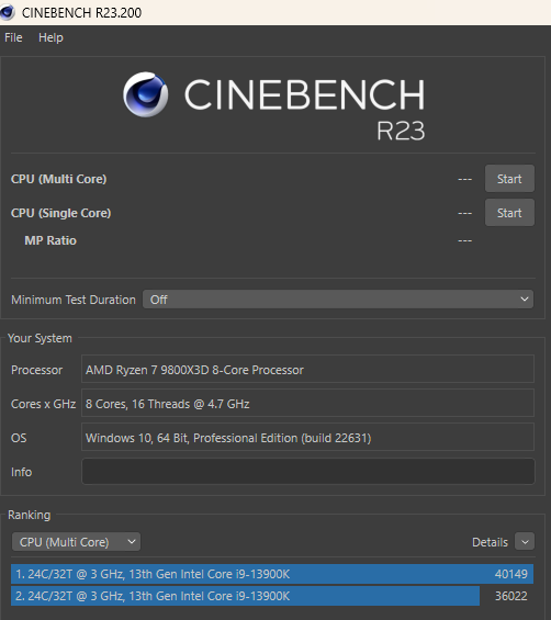 I remember checking CPU performance before the BIOS updates. Before the changes, I tested it the way Intel processors are usually benchmarked—by setting the BIOS so it wouldn’t limit the CPU, allowing it to run at full performance. I used Cinebench R23 for those tests; I typically use 3DMark only for GPU benchmarking, as that’s what it’s mainly designed for.