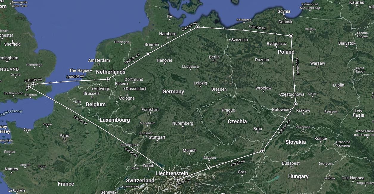 The above course is about 2,100miles long. I completed it in just under an hour. ~55 minutes. I completed it with 58% fuel remaining: