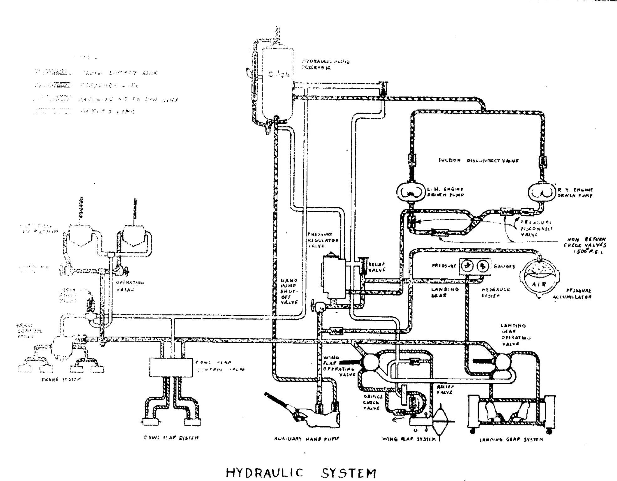 The diagram I provided is of a DC-3 without the hydraulic feed for a gyropilot. I’d expect a separate pressure regulator, check valves, pressure release valve, etc. for that entirely separate system driving the gyropilot.
