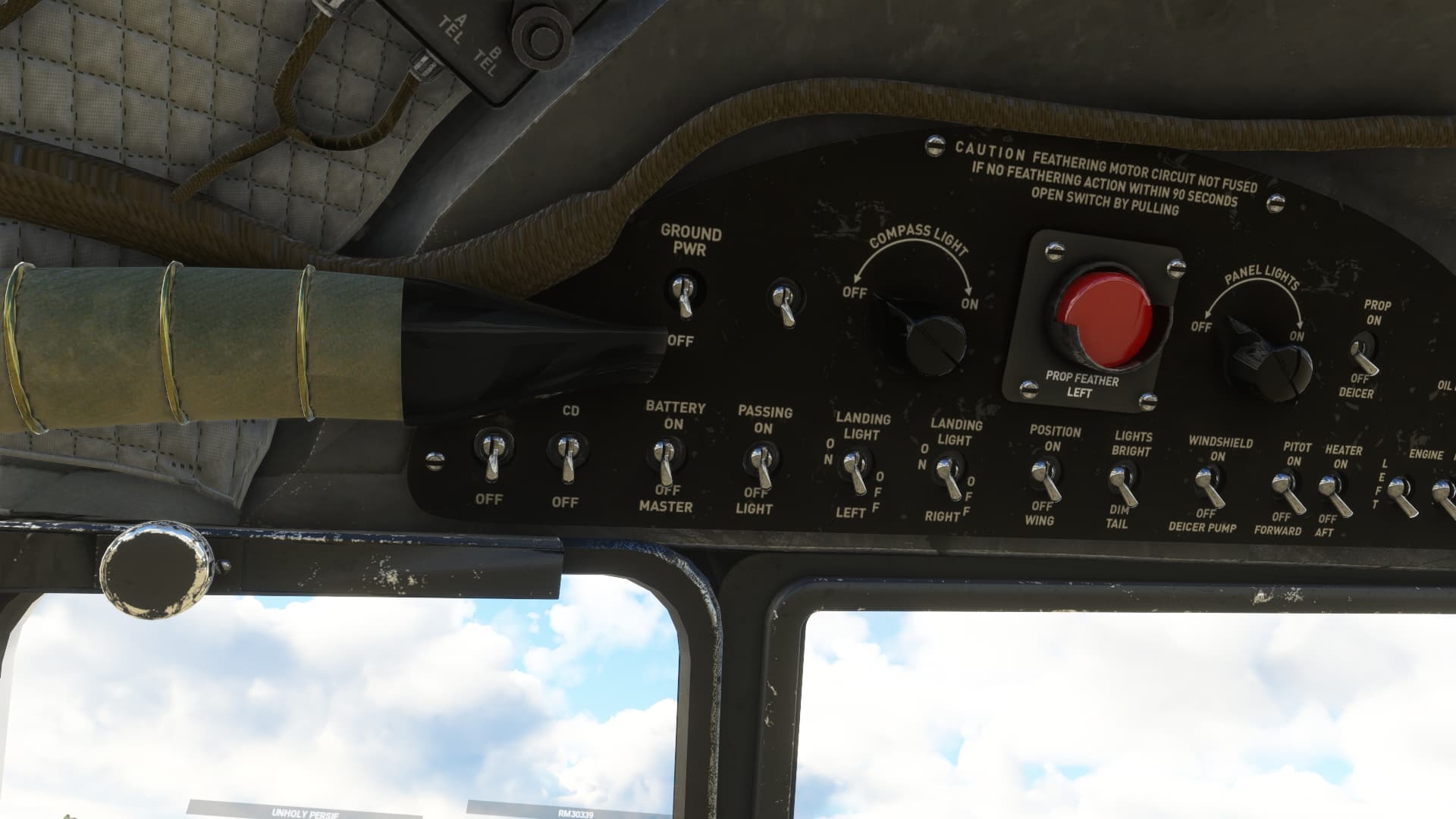 Load into the DC-3 Enhanced, look at beacon light switch and note no label present.