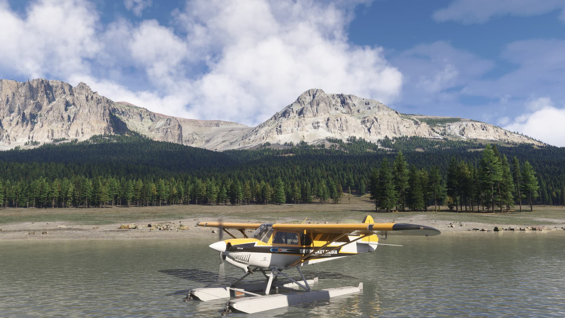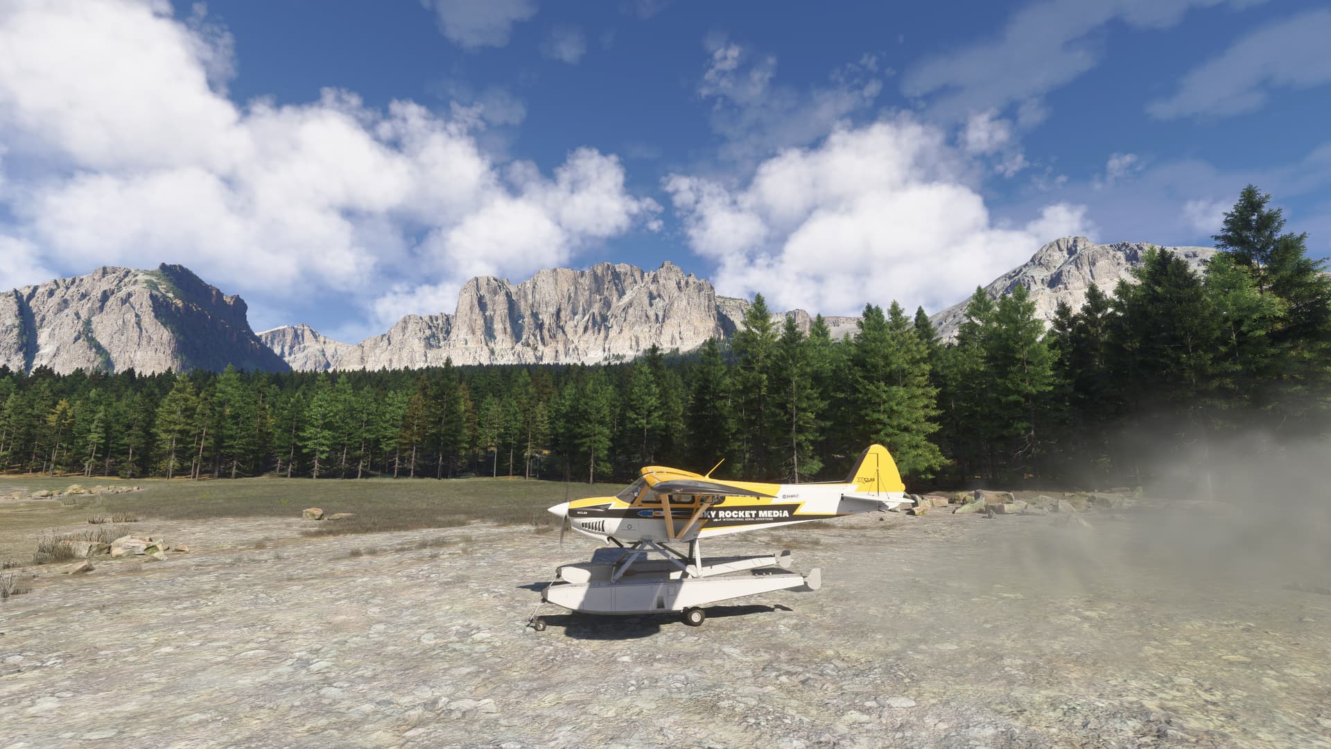 The three screenshots are from the Glacier park World photographer challenge. I never got around to the challenge but I saw that lake with the fabulous reflections and had to land. I even lowered my gear in the water and taxied up onto a nice area of the shore and then went back in the water. True amphibian. The plane behaved very well and I had to avoid boulders but it was really fun.