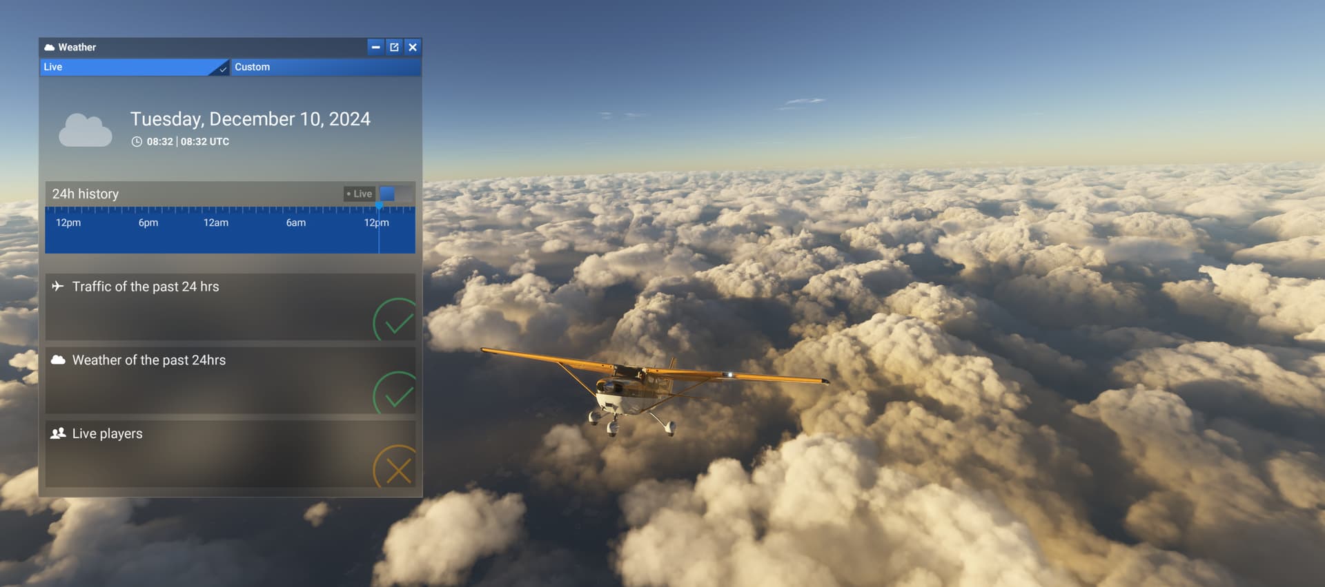 Description of the issue: I’ve tried multiple airports across the UK today and the live weather is not working correctly, the cloud cover is almost always missing at airports either reporting it by METAR or even where the Meteoblue forecast dictates there should be cloud.