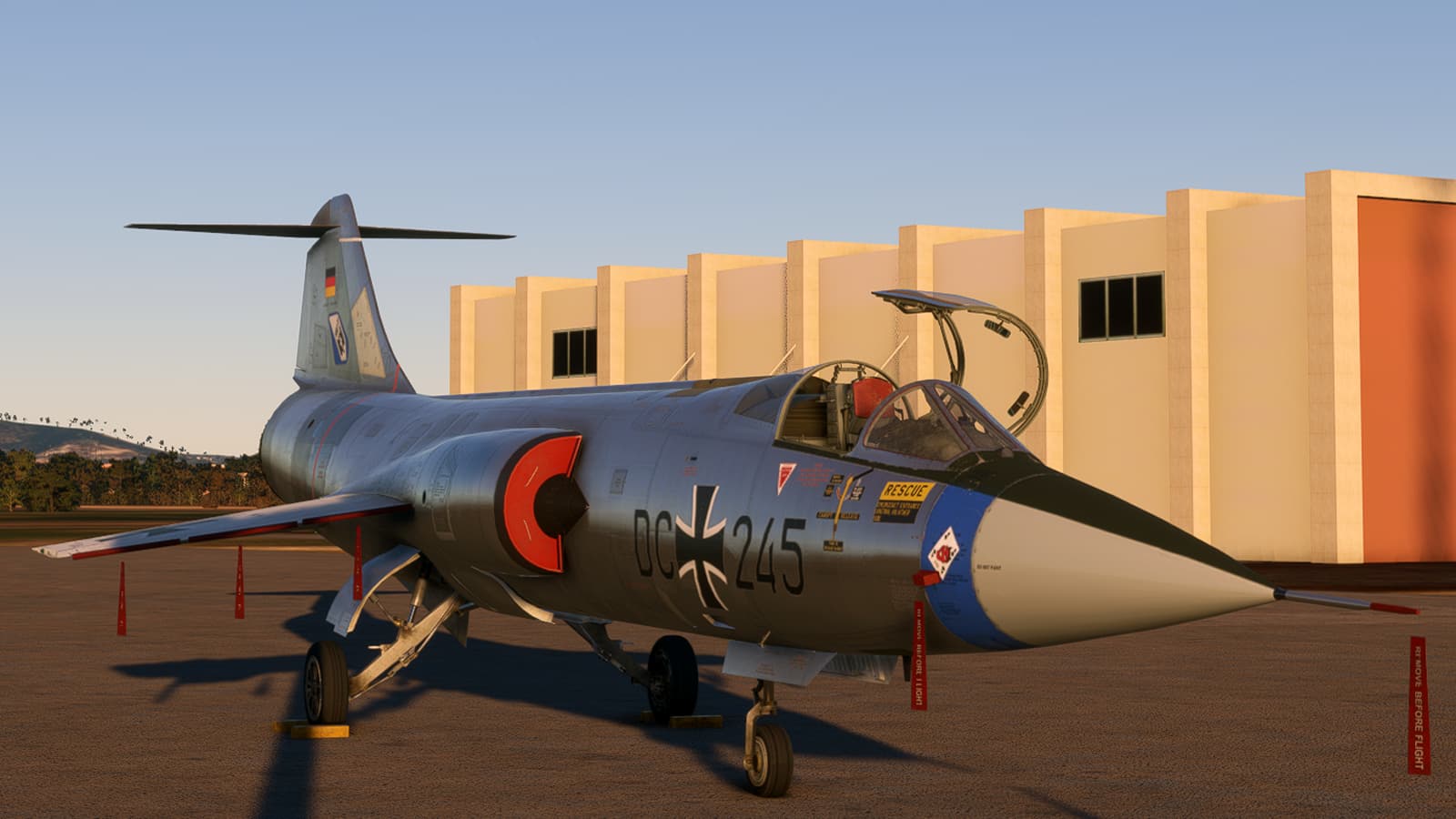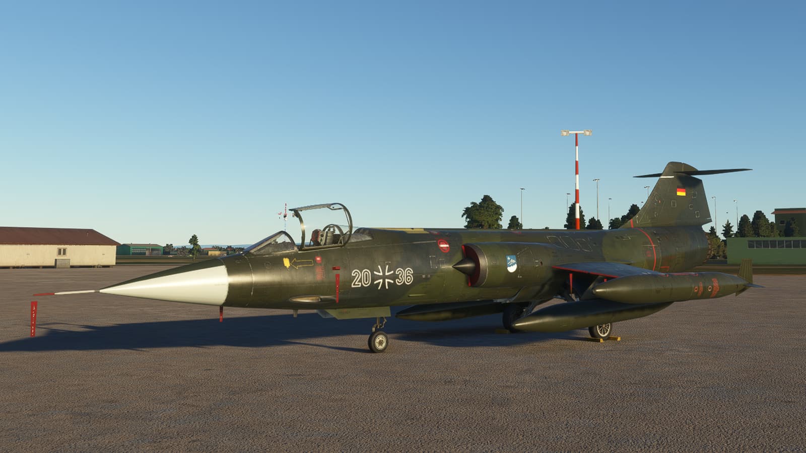 Hi,for now we don’t have in plans to put weapons under our F-104’s,also for restrictions made by Microsoft about weapon policy.