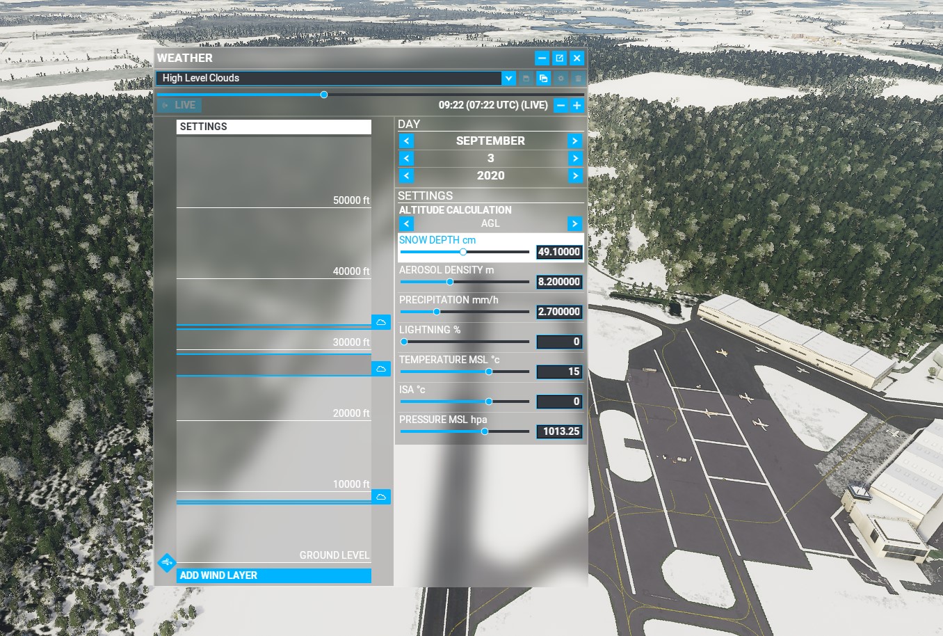 When flying in Europe live weather works for me, including correct winds. Never used the snow slider… there is still so much more to explore