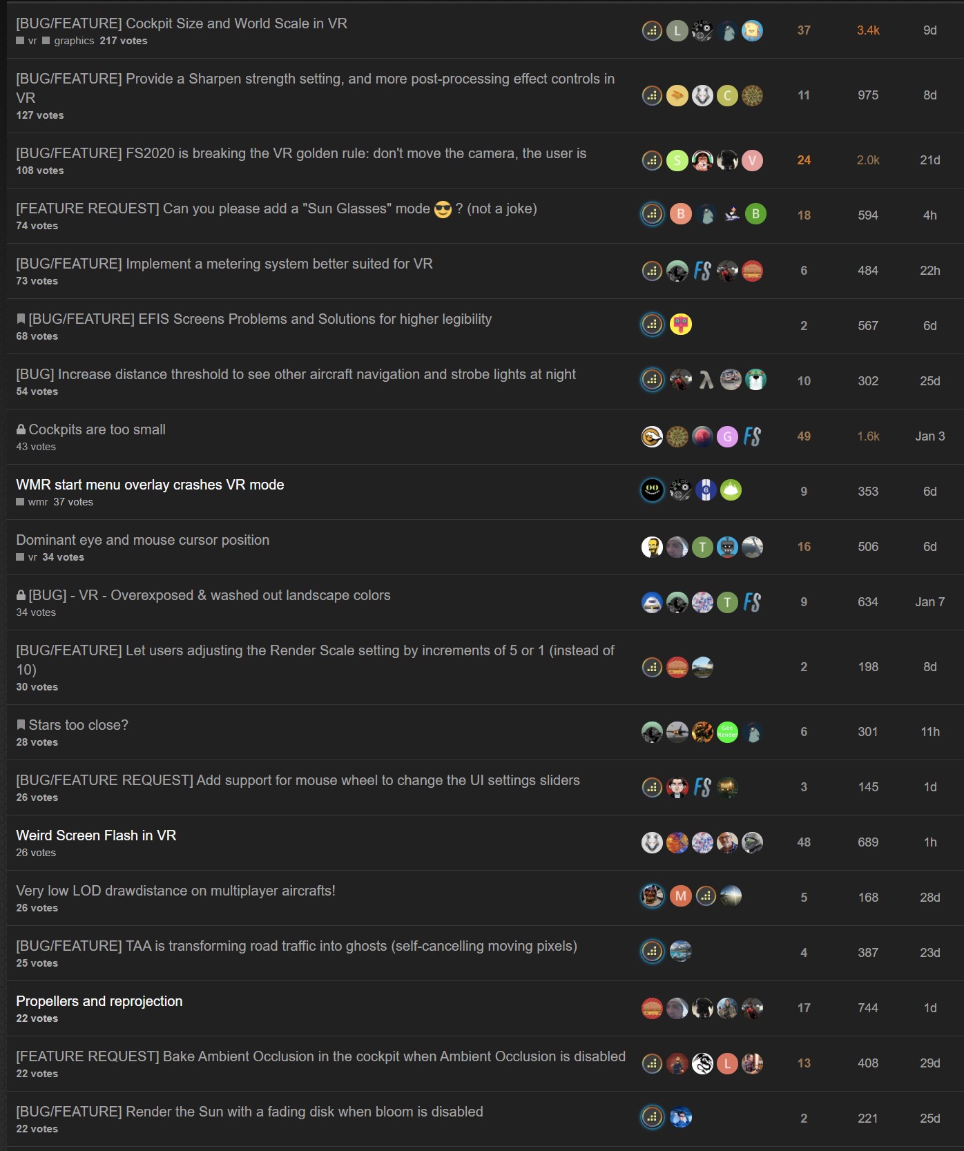 Please note we’re still waiting for a proper VR Wishlist forum. Therefore many VR only wishlist items are listed only in the VR Bug forum instead. Therefore the snapshot is making me wondering: