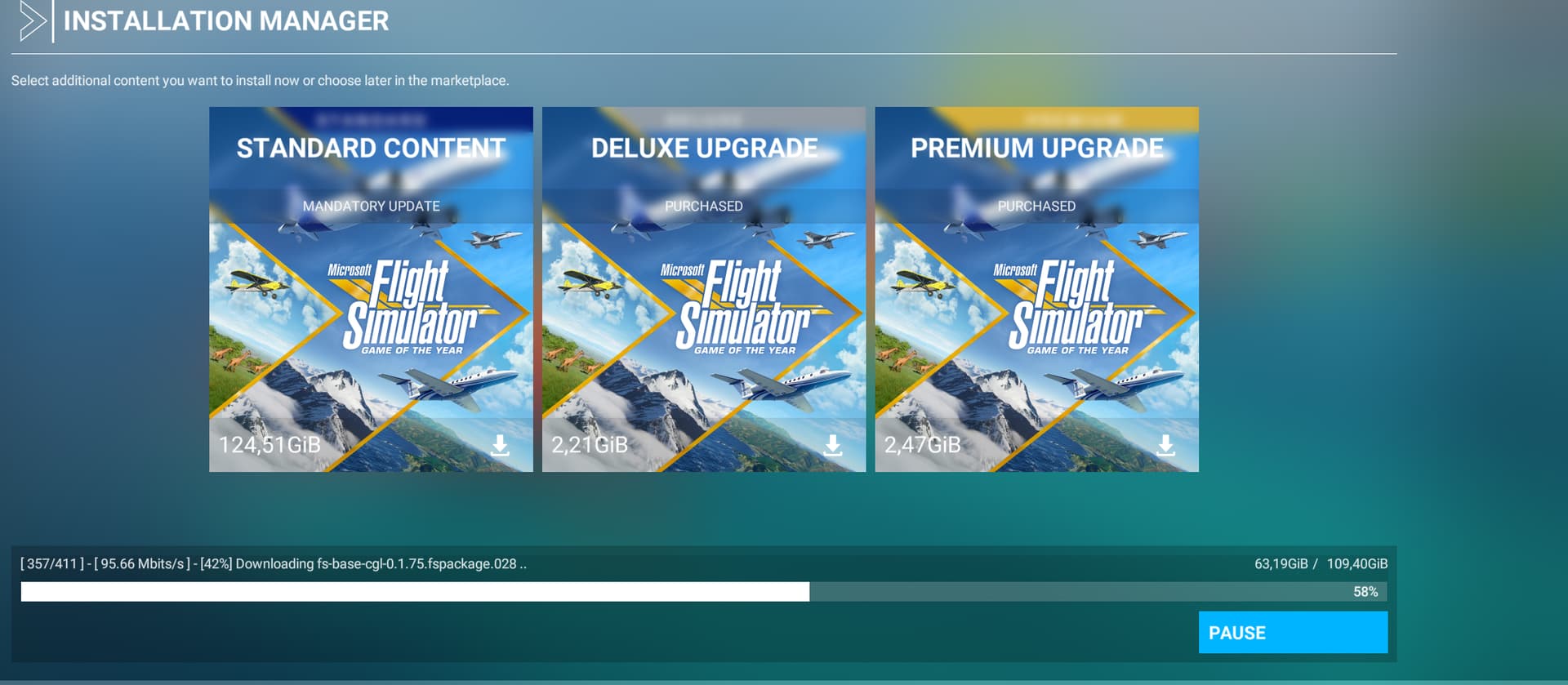 Opened the store and got the basic update (1.xx G), then started the sim. It wanted to download the whole 115G (since it seems to always look for the default path rather than the custom path I have set), browsed it over to my custom path and it did a small update.
