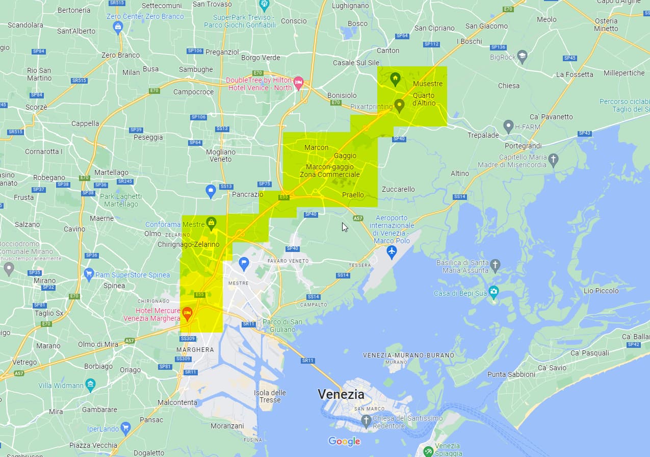 Mainly the Quarto d’Altino and Marcon town and all along the highway.