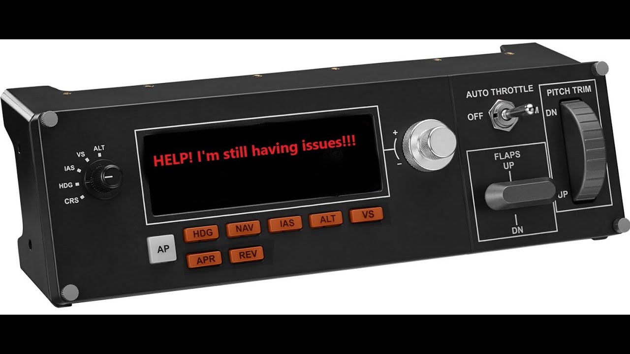 I have the Logitech Multipanel (Autopilot) and it has had issues with locking up, freezing, and going blank. I have to unplug it from the PC and plug it back in. There are two different drivers for it now, the second being more stable. I have mine plugged into a Powered USB Extension, and the panel itself doesn’t need any extra power to run, hence why you need to change the setting from 1 to 0. Here is a couple of videos for you to try, even though your issue might not be the same as described here.