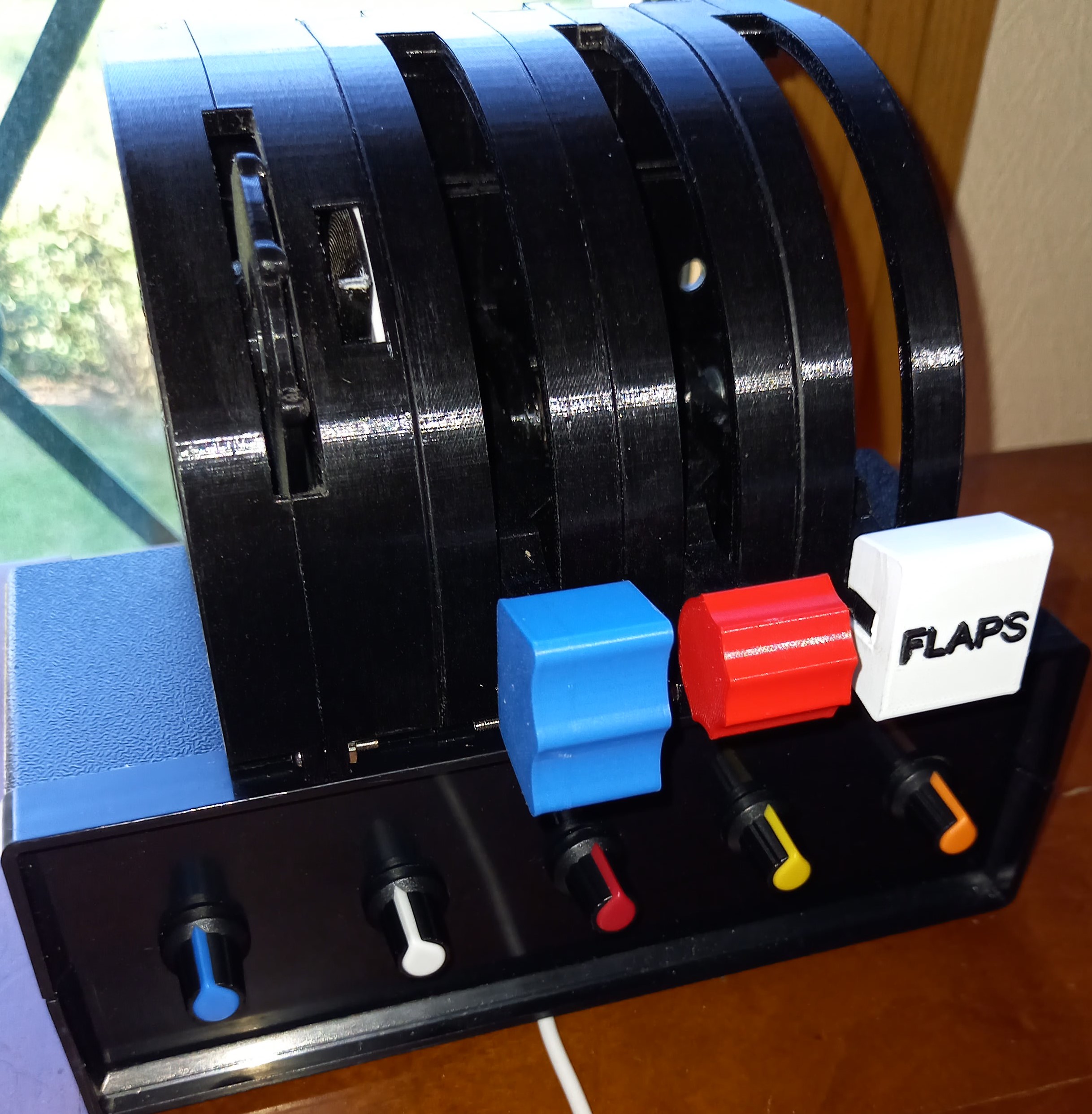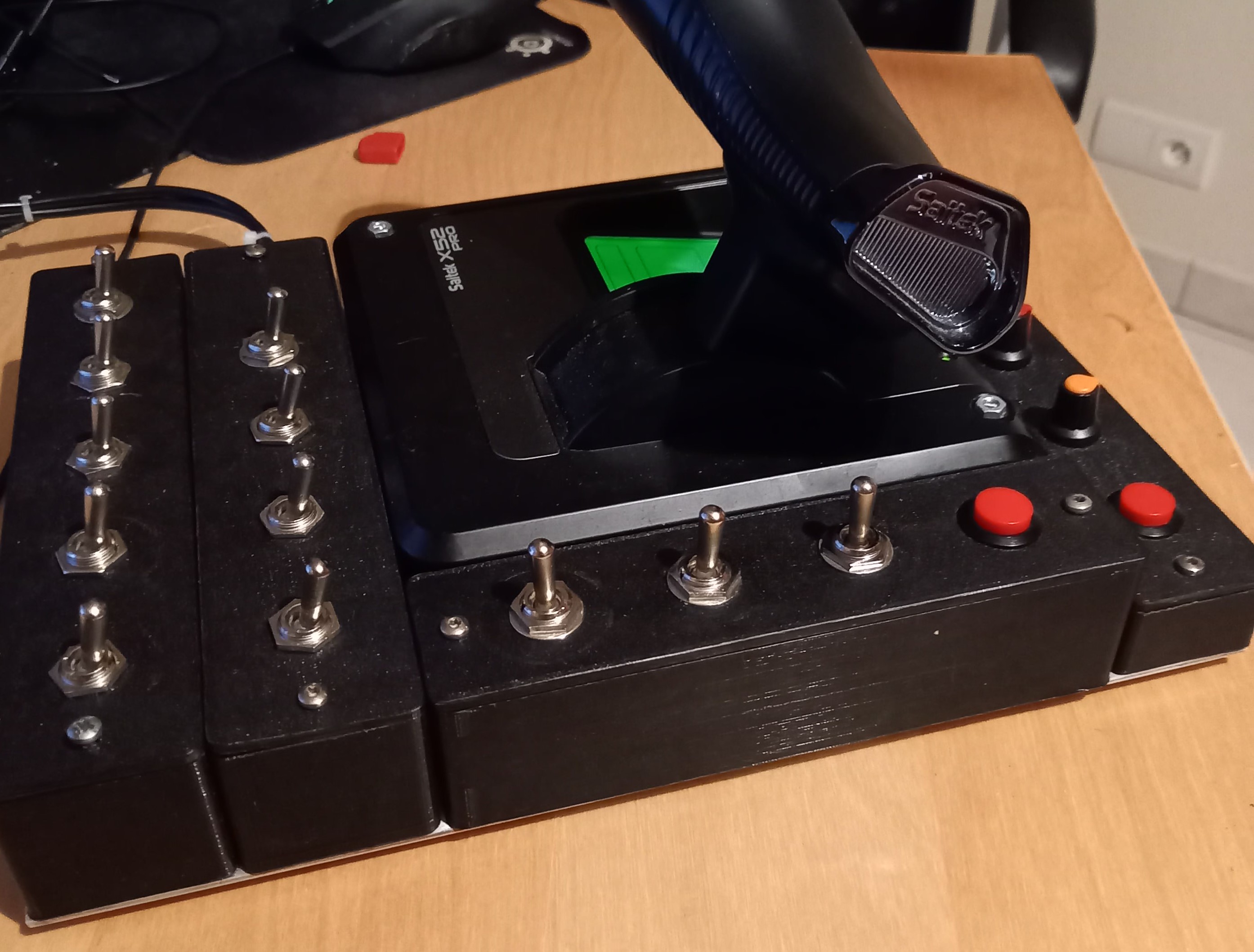 This is our diy box project, an extension for my x52 throttle. Casing are 3d printed and everything mounted on a alluminium backplate.
