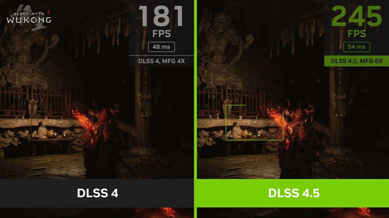 DLSS 4 vs. DLSS 4.5 in Black Myth: Wukong: Better image quality and faster gameplay at 240 frames per second