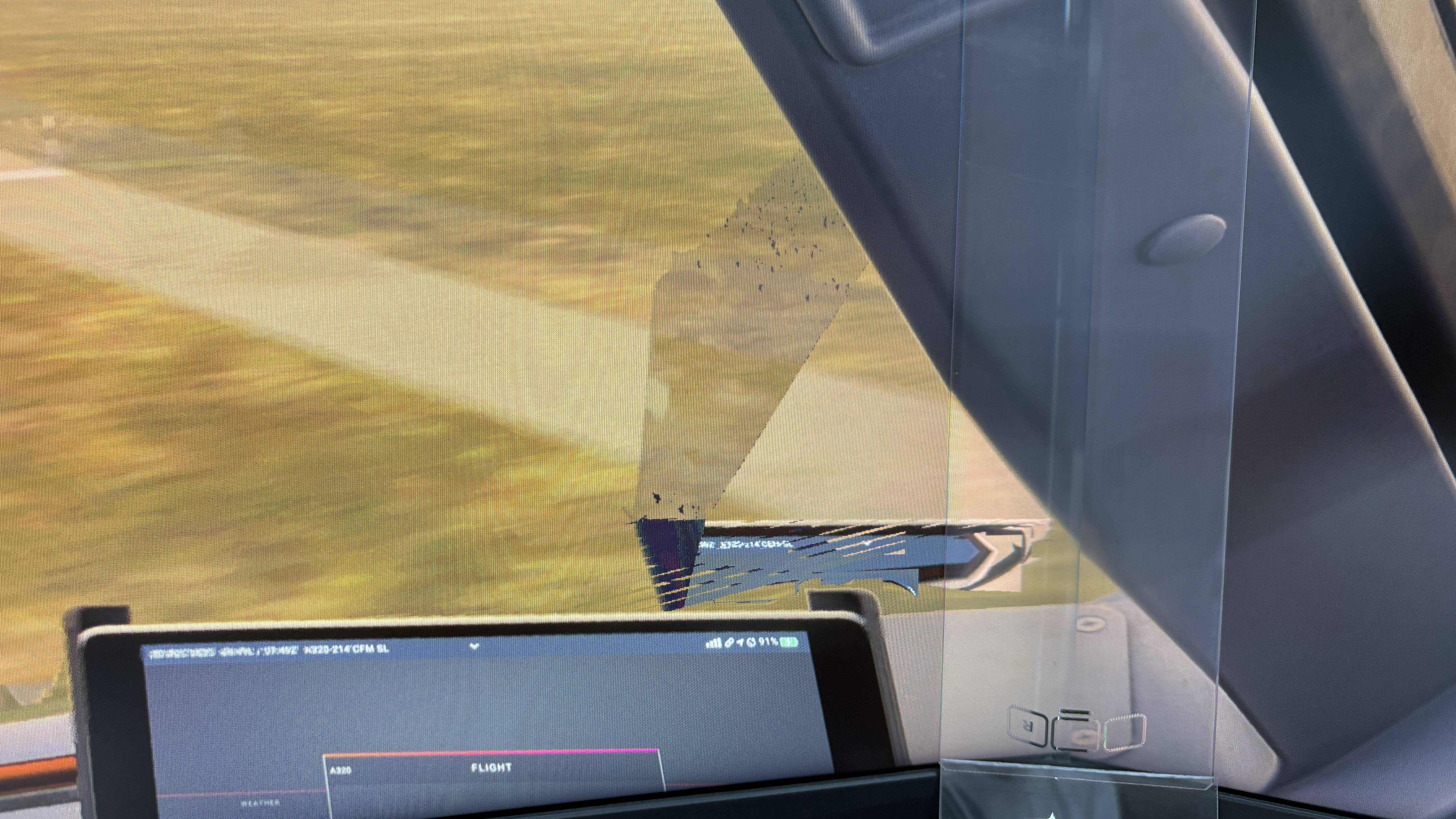 With DLSS DLAA and FG ON, I gain 20 fps and jumb up to around 40 FPS BUT I have on ground and in the vicinity of it these awful artefacts blinking on left and right low side if the display, overall affecting the visual … On the picture below, the visual is not 100% well aligned, but we notice the black shape blinking on the side of the middle monitor.