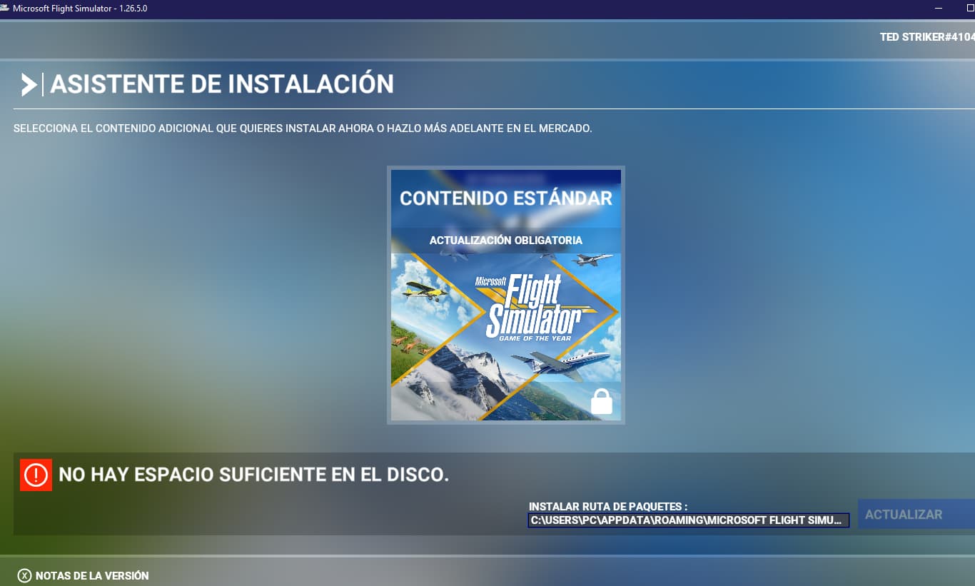 I hope that is not the mentioned 250GIG SSD . The OS + MSFS on a 250GIG SSD is may be not a good idea. And also if the correct path is set, I assume some temp space on C: drive is necessary.