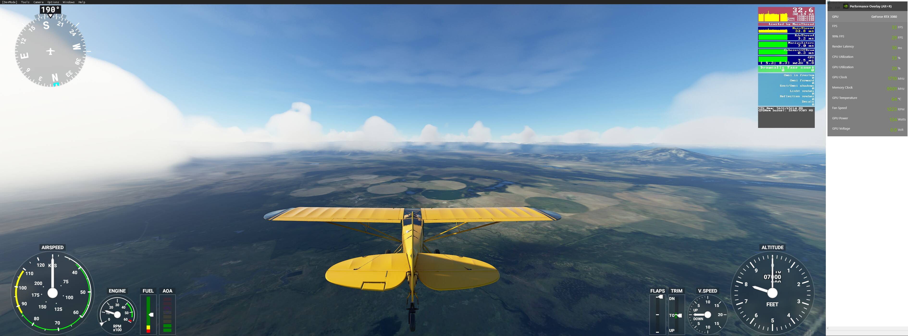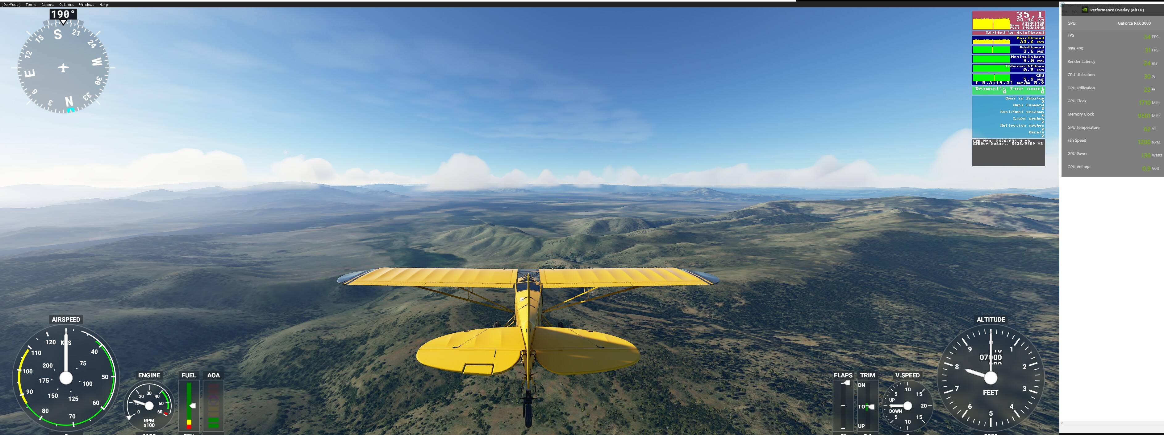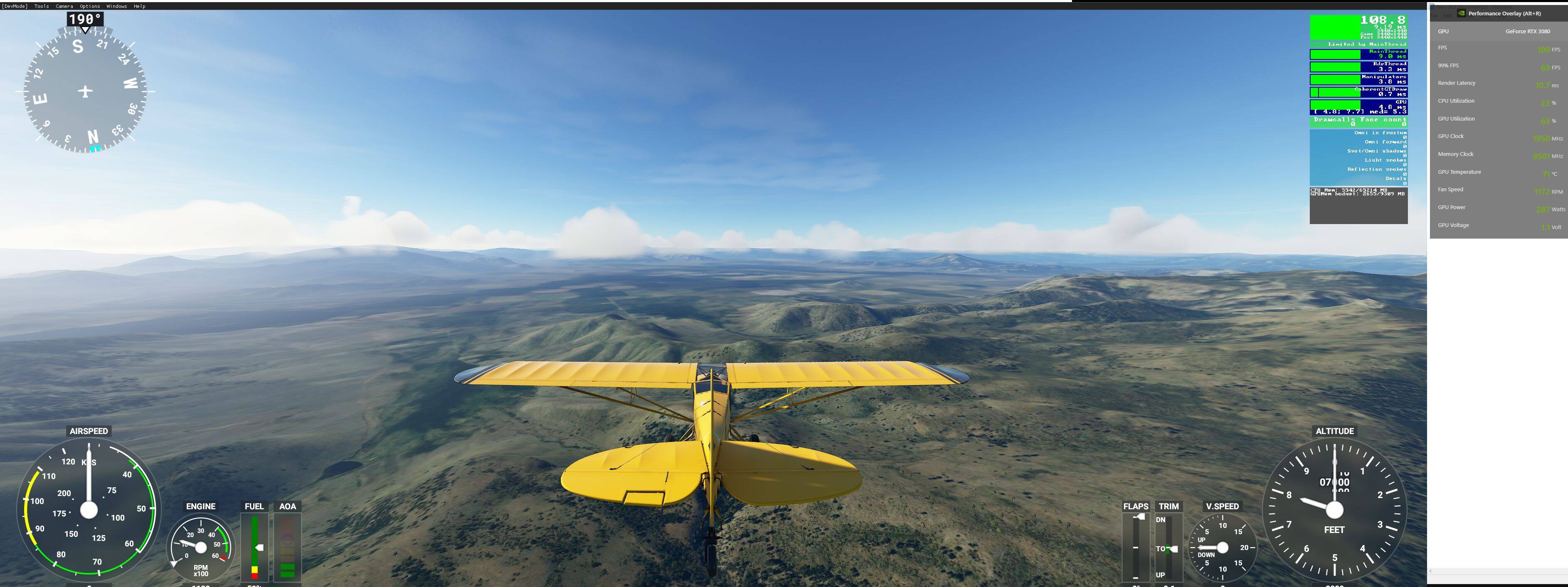 In an earlier build of the simulator I was running game bar and remember the GPU hovering in the 50-75% range, which would explain why it stayed smoothe, since the processor was not throttling back either due to GPU overheating.