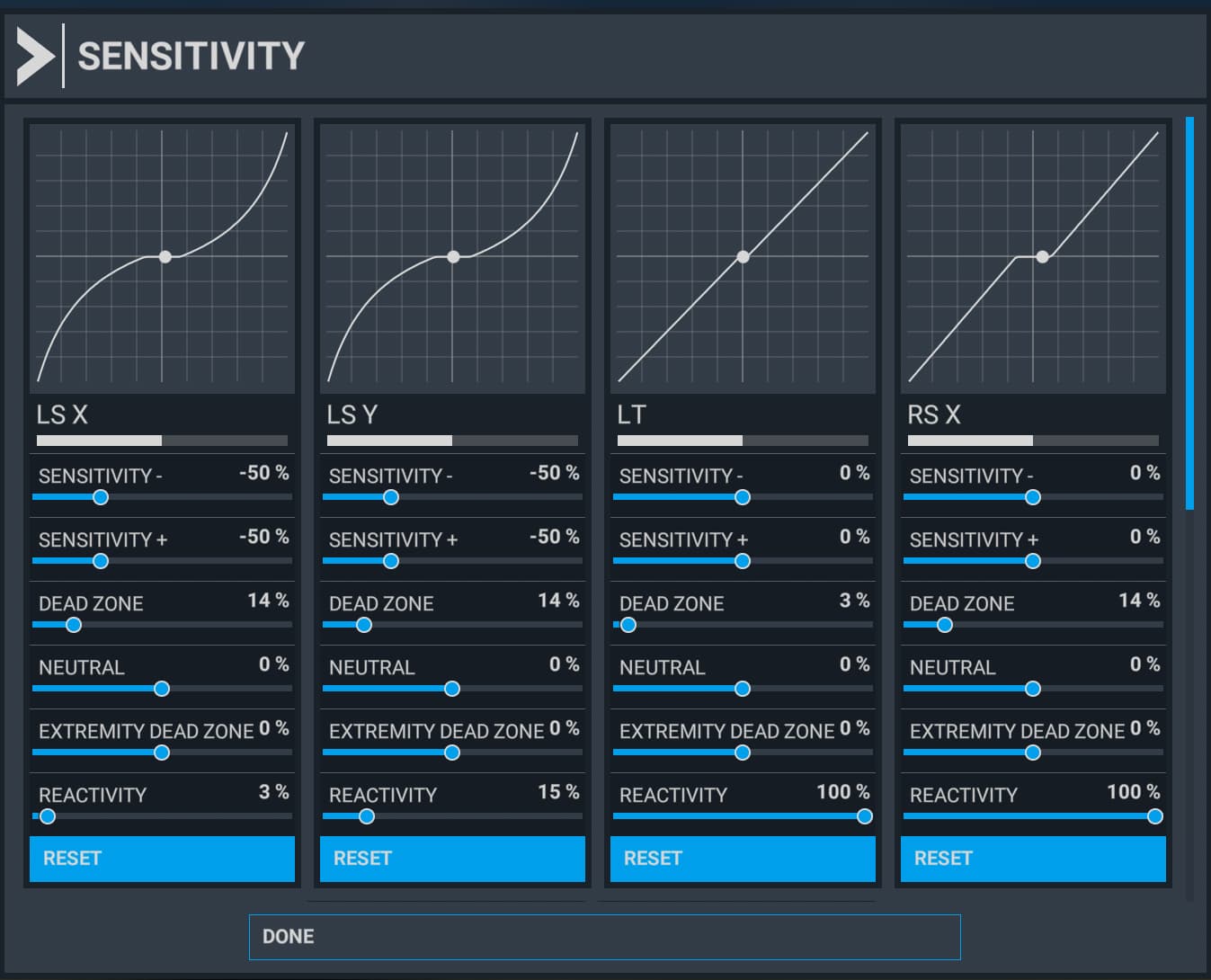 Default drone camera have a very large deadzone and starts moving or rotating with non-zero speed. It excludes ability to control it precisely and, for example, make a smooth external video of your aircraft.