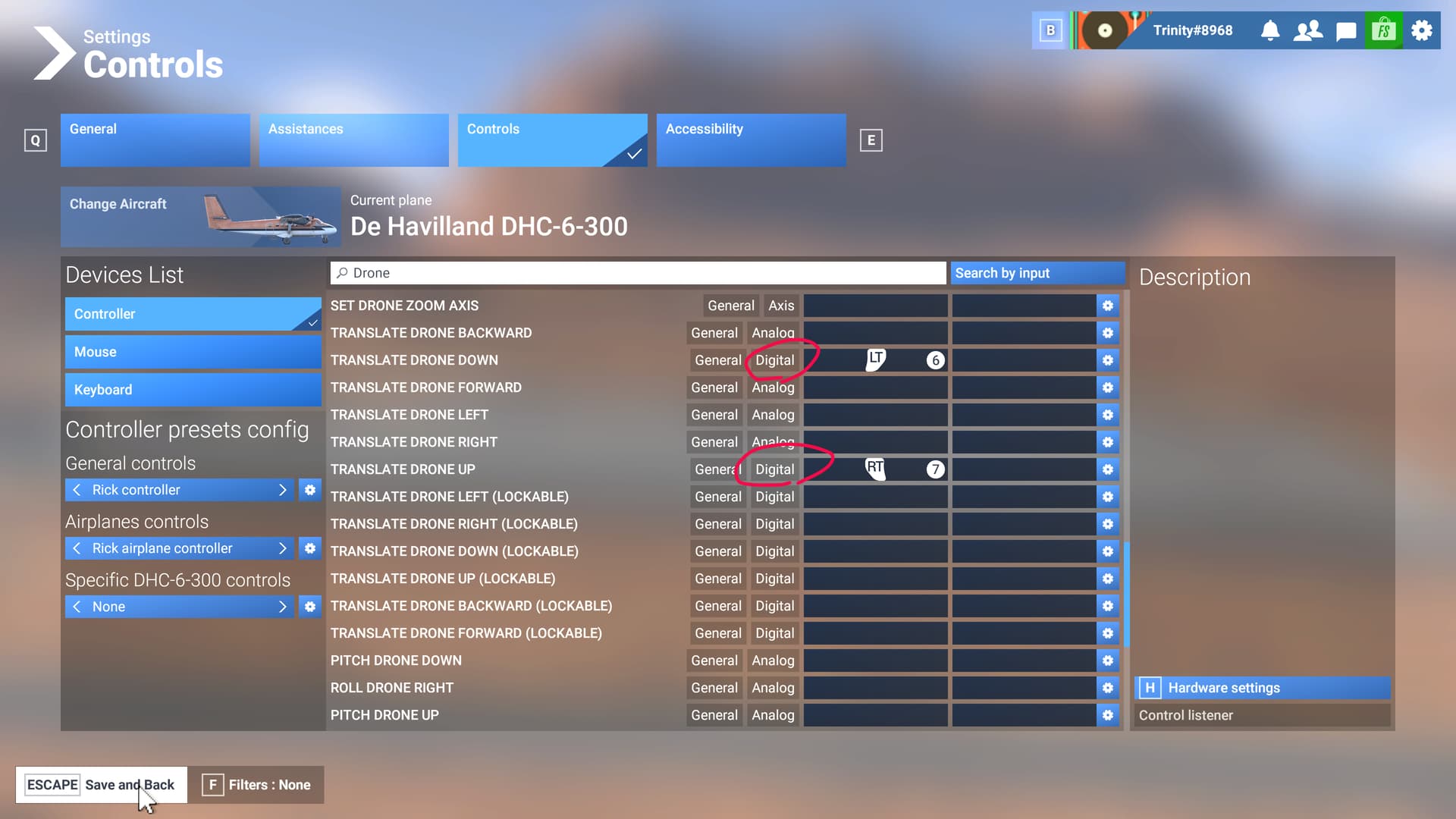 As shown in the screenshot the up and down movement of the drone camera is set to digital. This is obviously not logical and should be set to analog (just as with msfs2020). When set to analog you have more control over the up and down motion. Currently it’s not possible to change digital to analog. Can you please fix this?