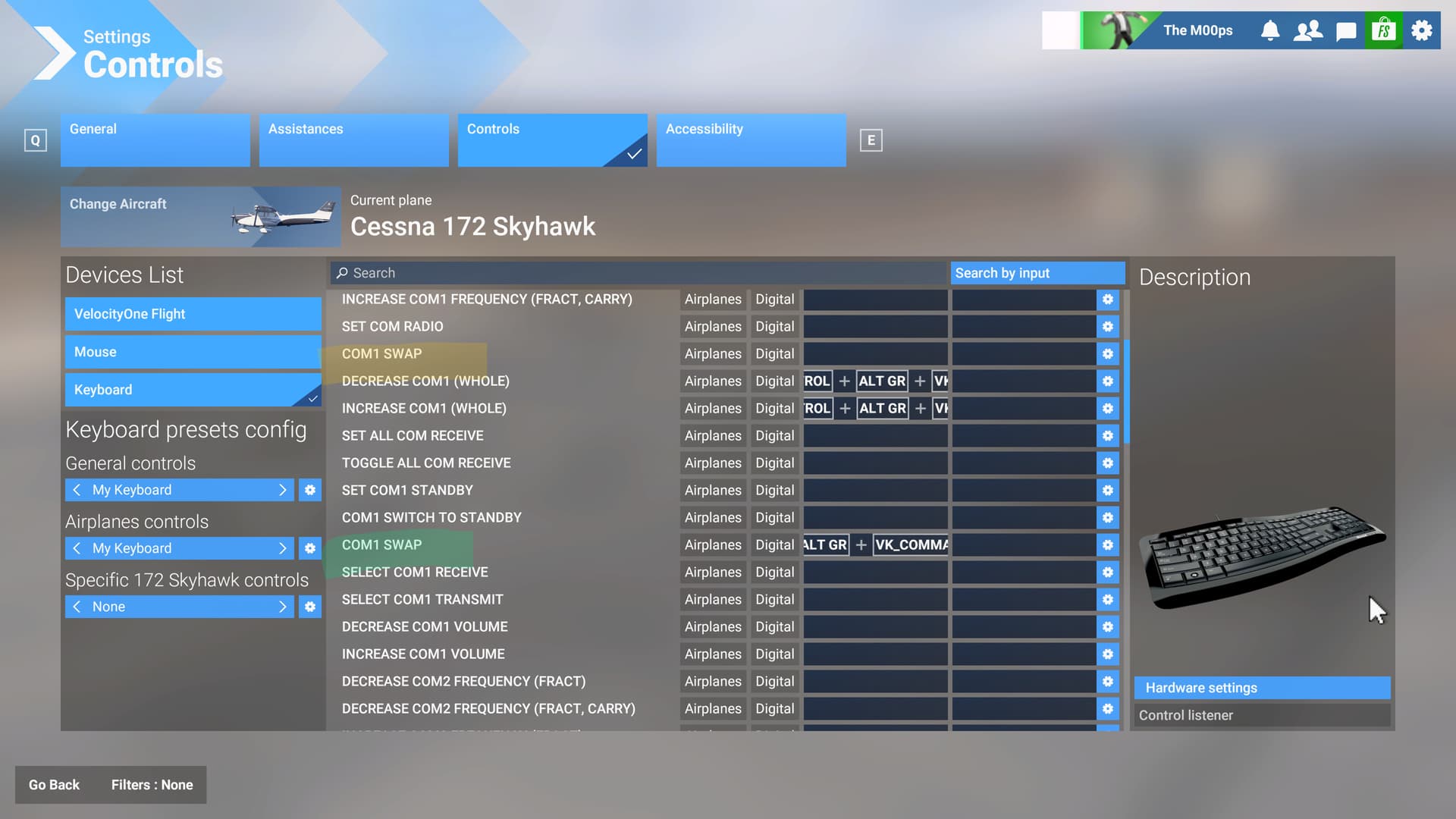 Description of the issue: There are two “COM1 Swap” commands in the settings. Only the 2nd one works. If the first one is mapped, neither will work.