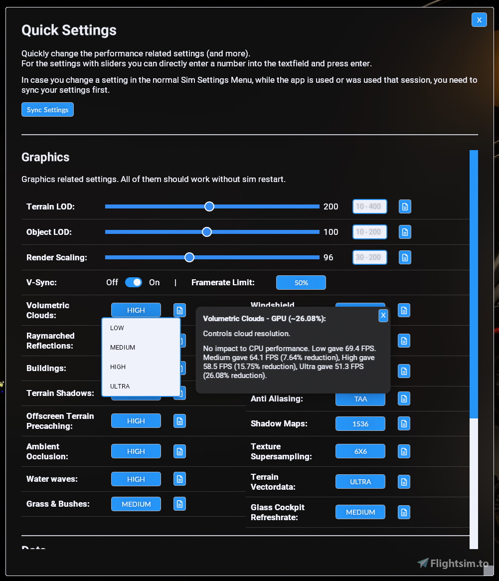 Would be awesome as I have this problem as well. I’m not sure how effectively they could really implement this though. I think it would have to just come down to some sort of dynamic resolution scaling where you set a target framerate and the sim does whatever it needs to do with the resolution to maintain that framerate. That’s definitely possible. But as far as altering settings like volumetric clouds, antialiasing, etc. on the fly like that, I don’t think it’s gonna happen.