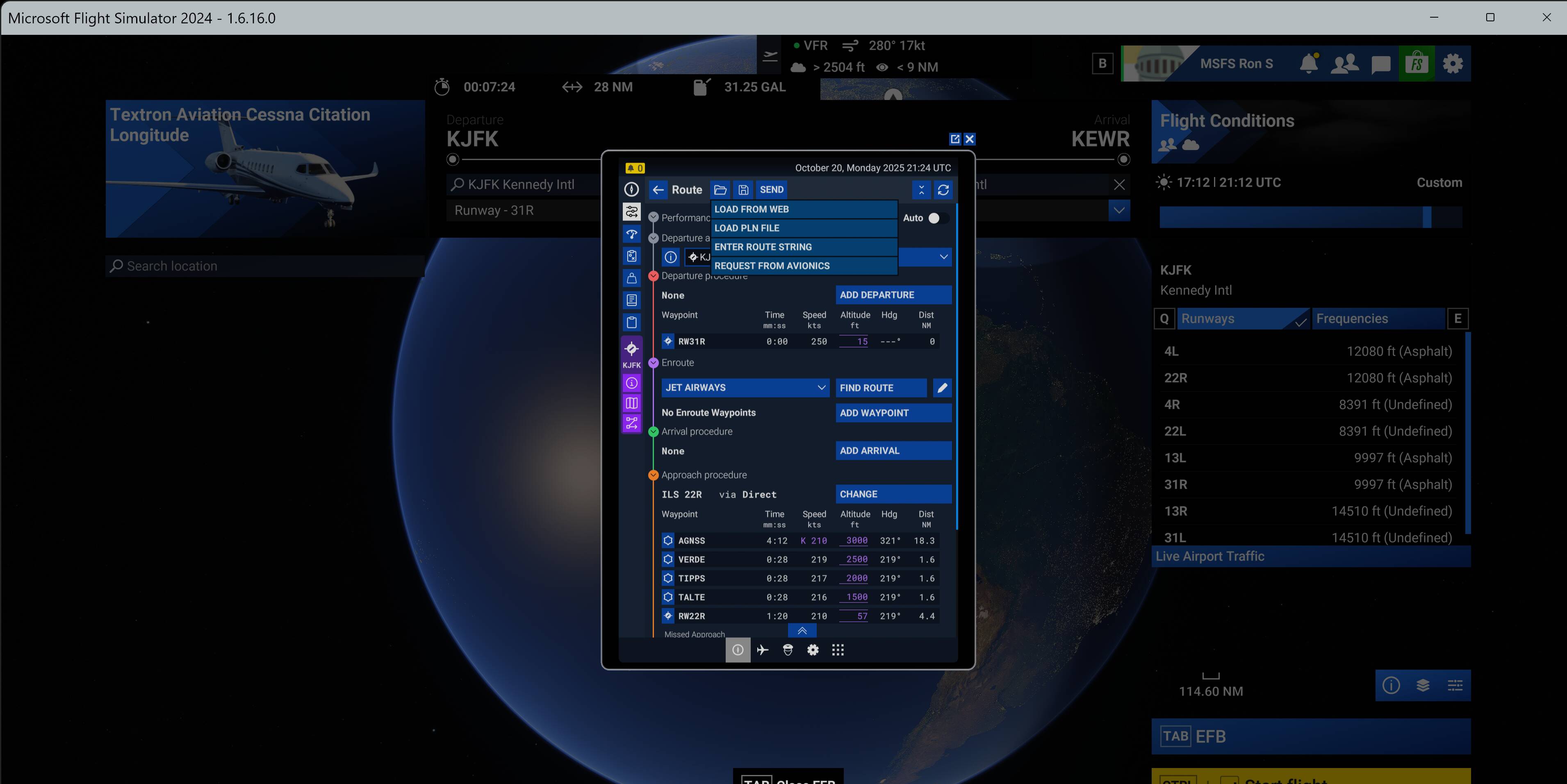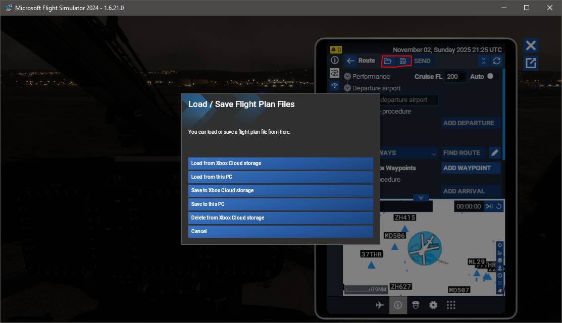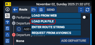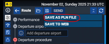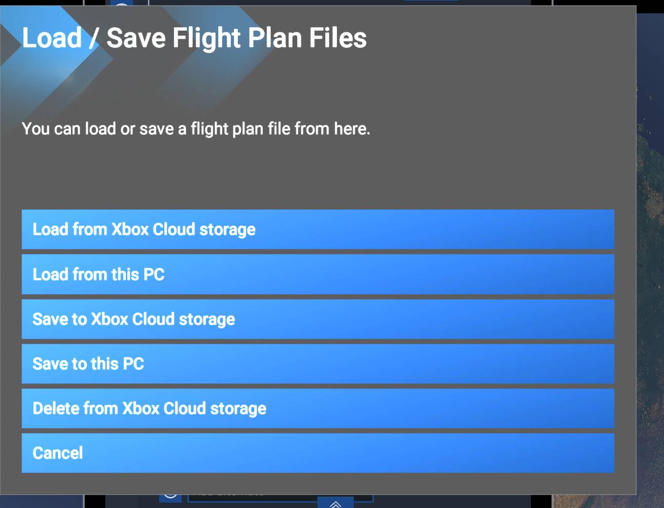 The options “LOAD PLN FILE” and “SAVE AS PLN FILE” only work ONCE after a fresh start of the sim and won’t have any effect when invoked again thereafter i.e. the pop-up “Load / Save Flight Plan Files” will no longer appear.