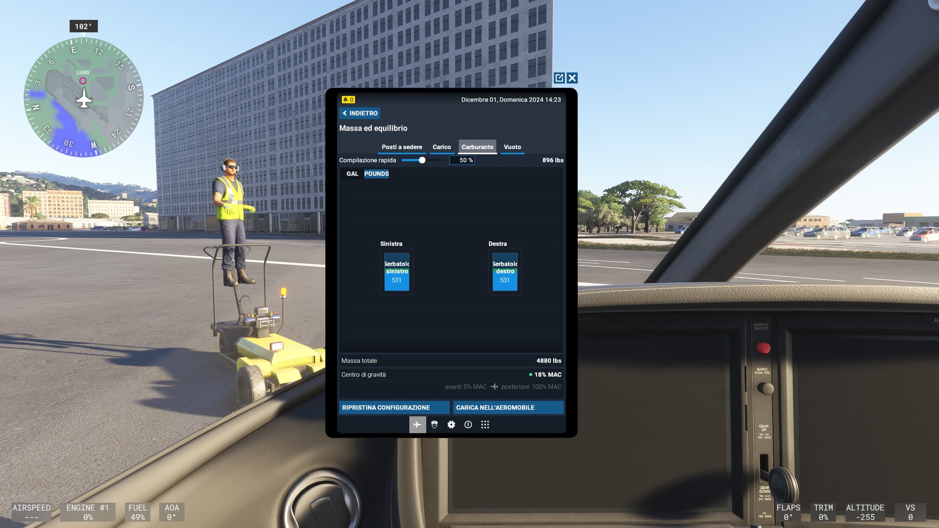 - Set your seats, cargo and fuel