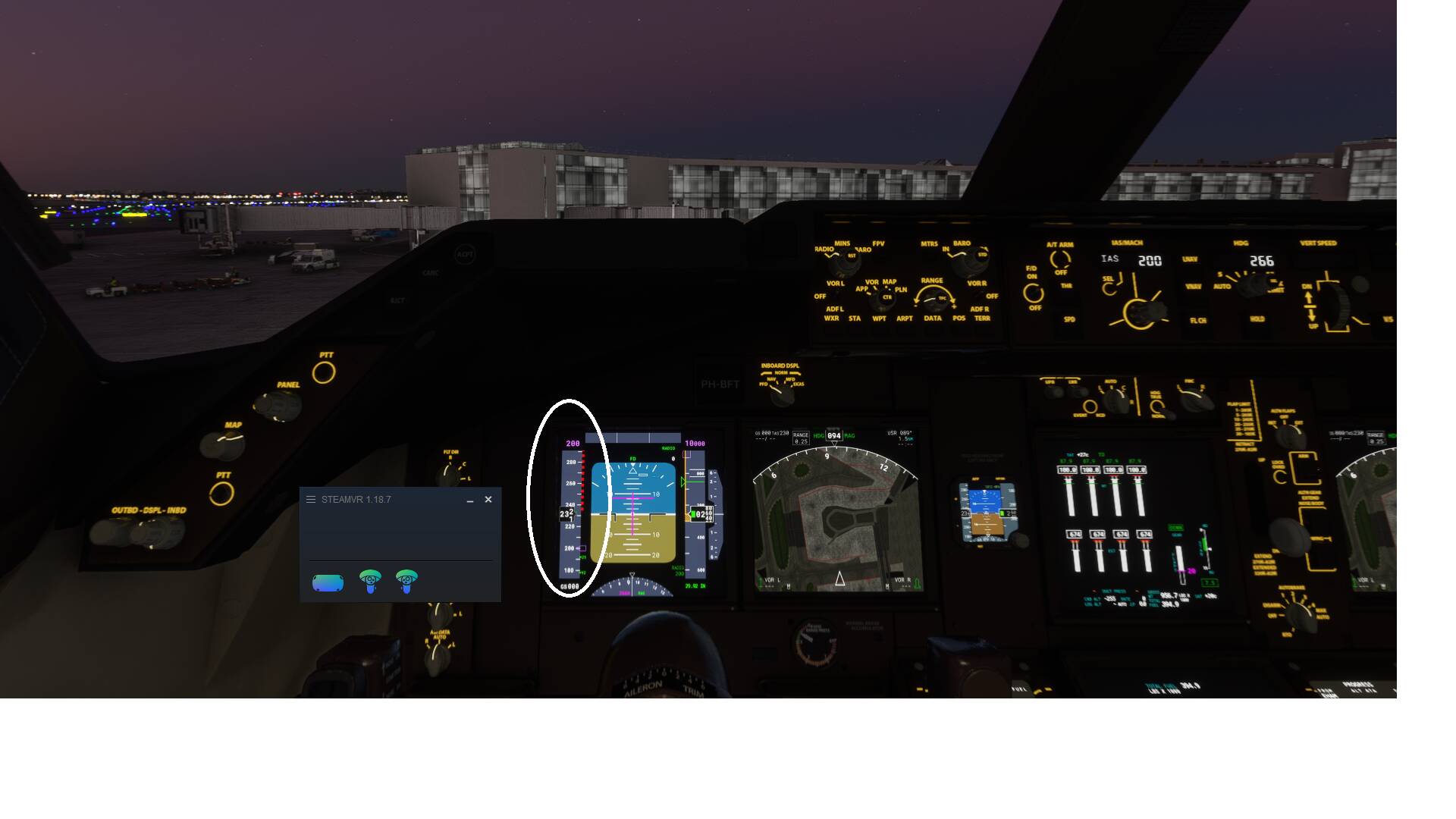 I also used the warp function from MSFS to move me to the takeoff position, but this didn’t resolve it. After the bug in the beginning it was replicated to the runway. See the second screenshot. Applied full power, i see the airspeed increasing but the plane won’t move at all