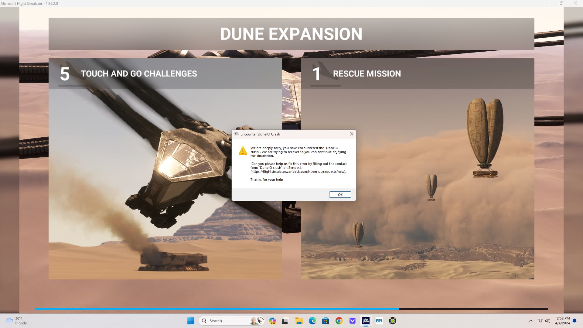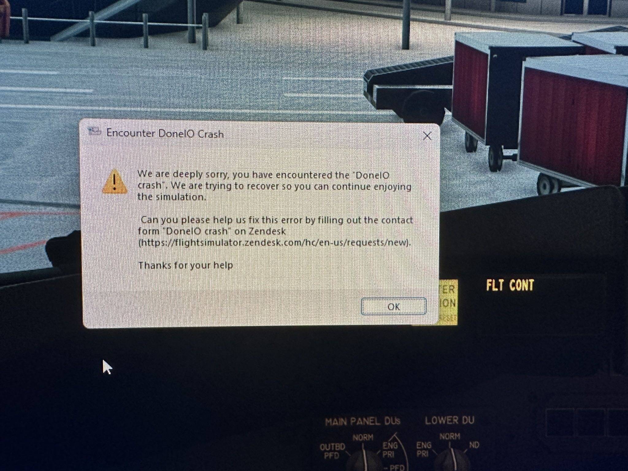 This is an error that I have never encountered before. I have a habit before loading the sim to restart the computer and not have anything in the background.