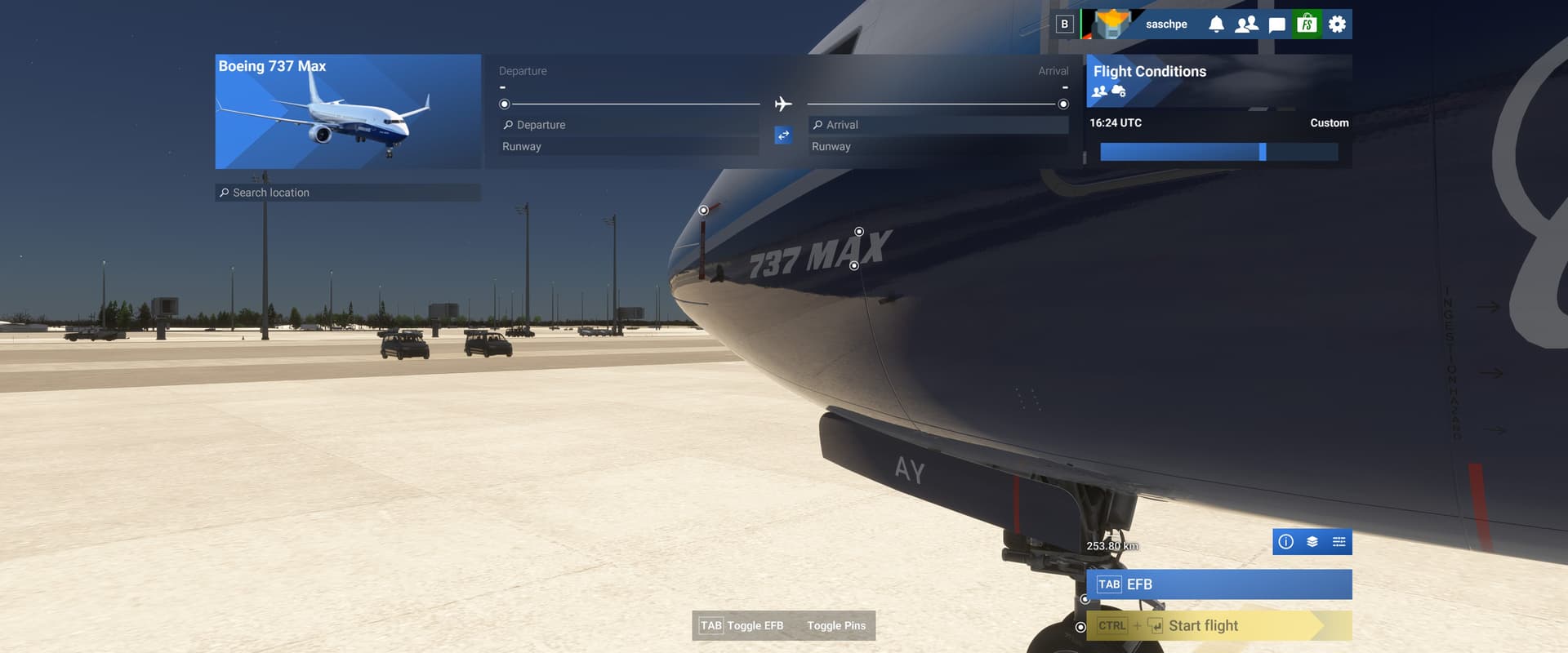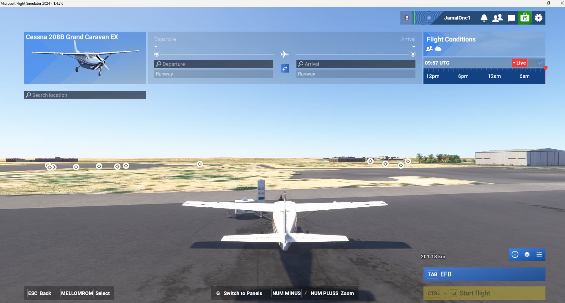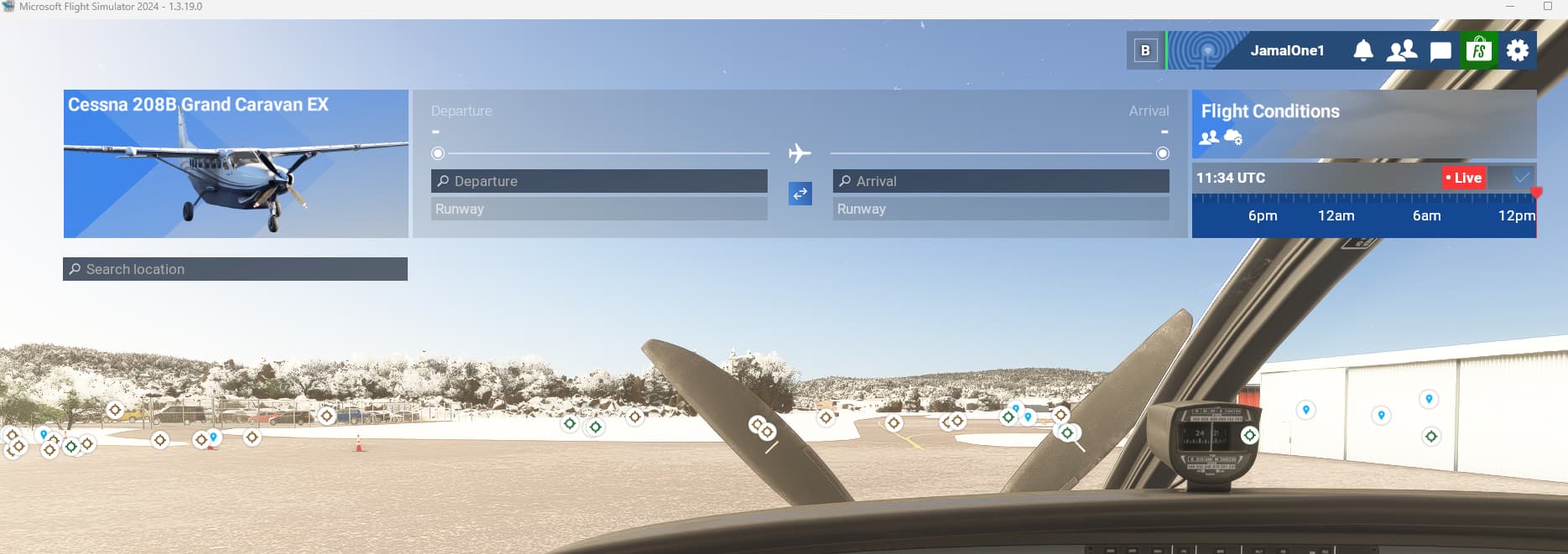 - Start a flight on an airport with any random plane in a cold-n-dark parking spot