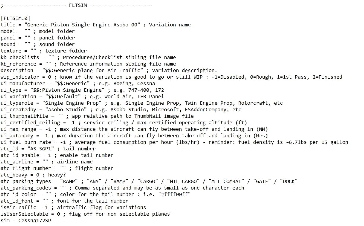 Downside is, that if i choose to use Asobo´s C152 as a GA aircraft, i have to manually add [FLTSIM.1] entry there for a flyable aircraft. It would be some must better, that i you could build new version that can read [FLTSIM.1] entries also, not only [FLTSIM.0] entries.