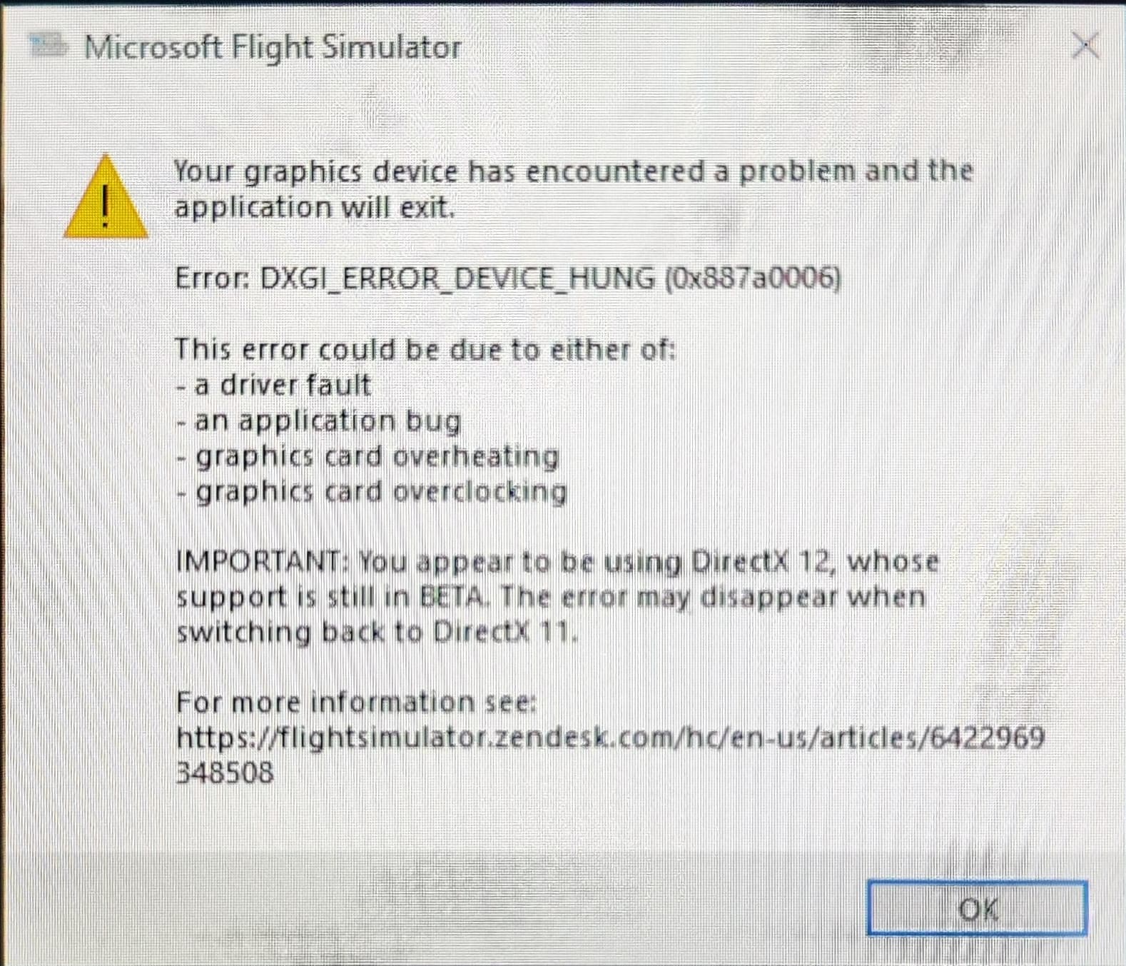 And now, for each flight, after a few minutes, I get the DXGI_ERROR_DEVICE_HUNG error…
