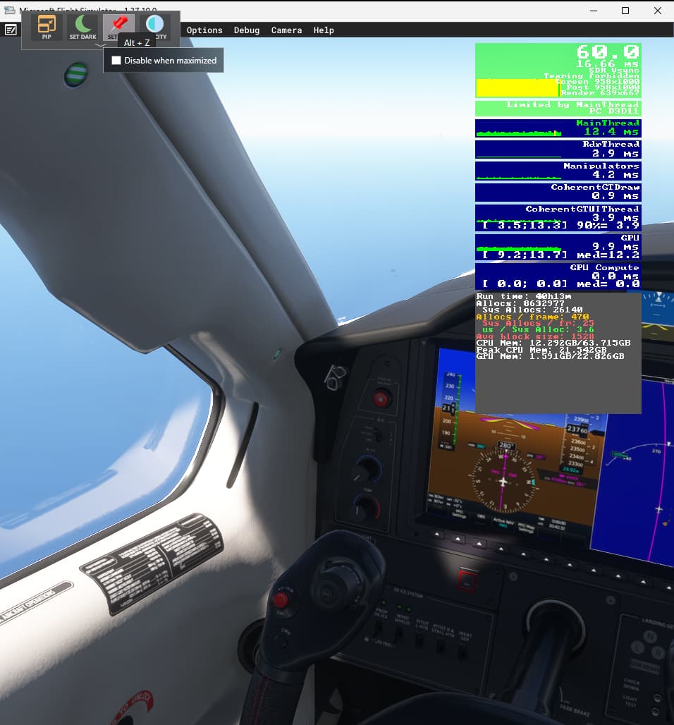 Either i just need to set this GPU at -200 for the 3 frequencies. Or, on previous flight, i was coming and going during the day to the computer to check on the flight, so maybe activity prevents MFS to crash. I’ll restart a session and will leave the flight unattended. we’ll see if it crashes. If it doesnt, this will prove that this bug may not be coming from MFS2020 but from the GPU. to be noted, i had SPAD.NEXT running during this last test and not the one thart lasted 8 hours so i’ll try to discard this as well in future tests. I’ll aslo set VSYNC on for this next test flight…