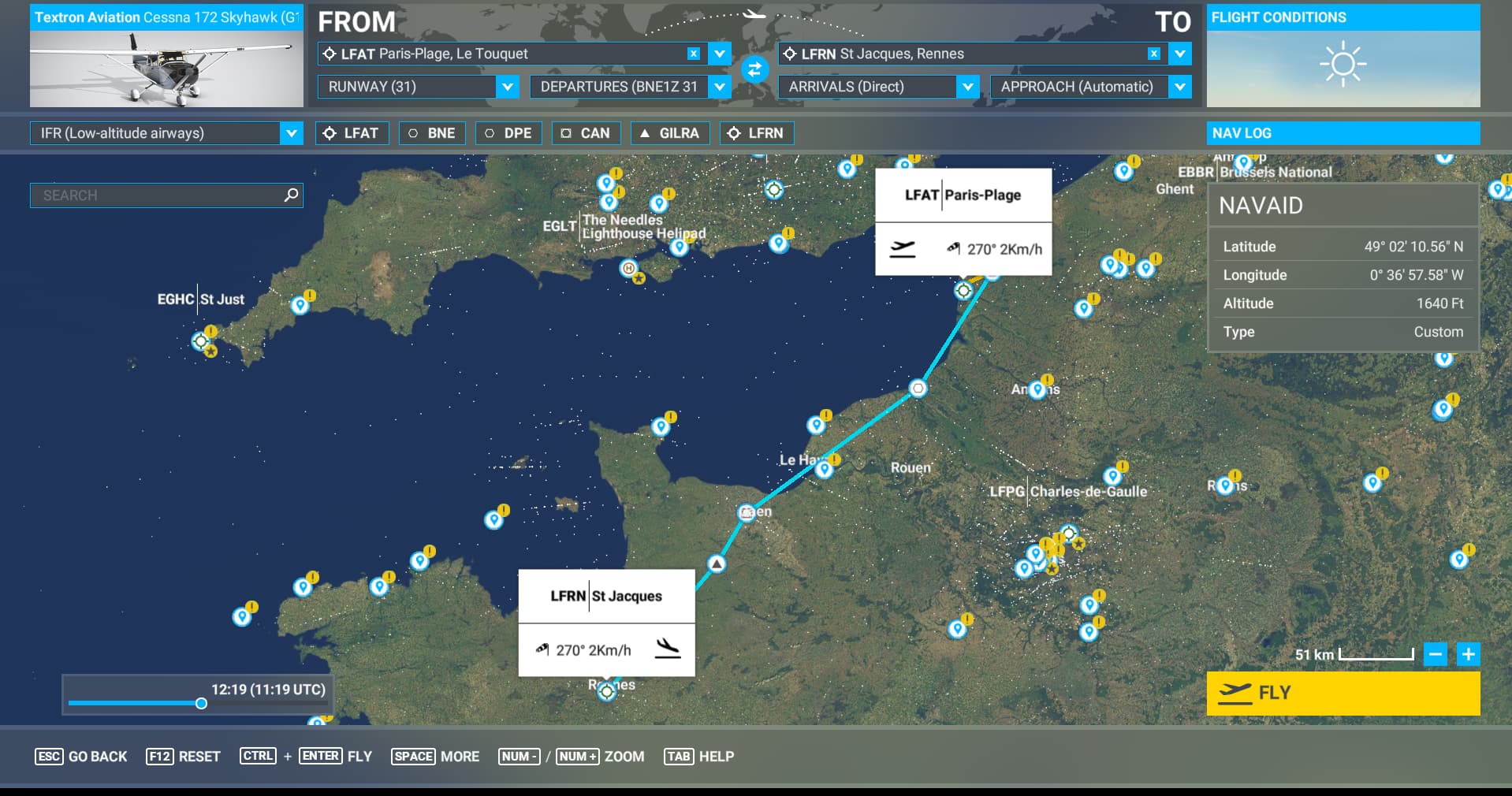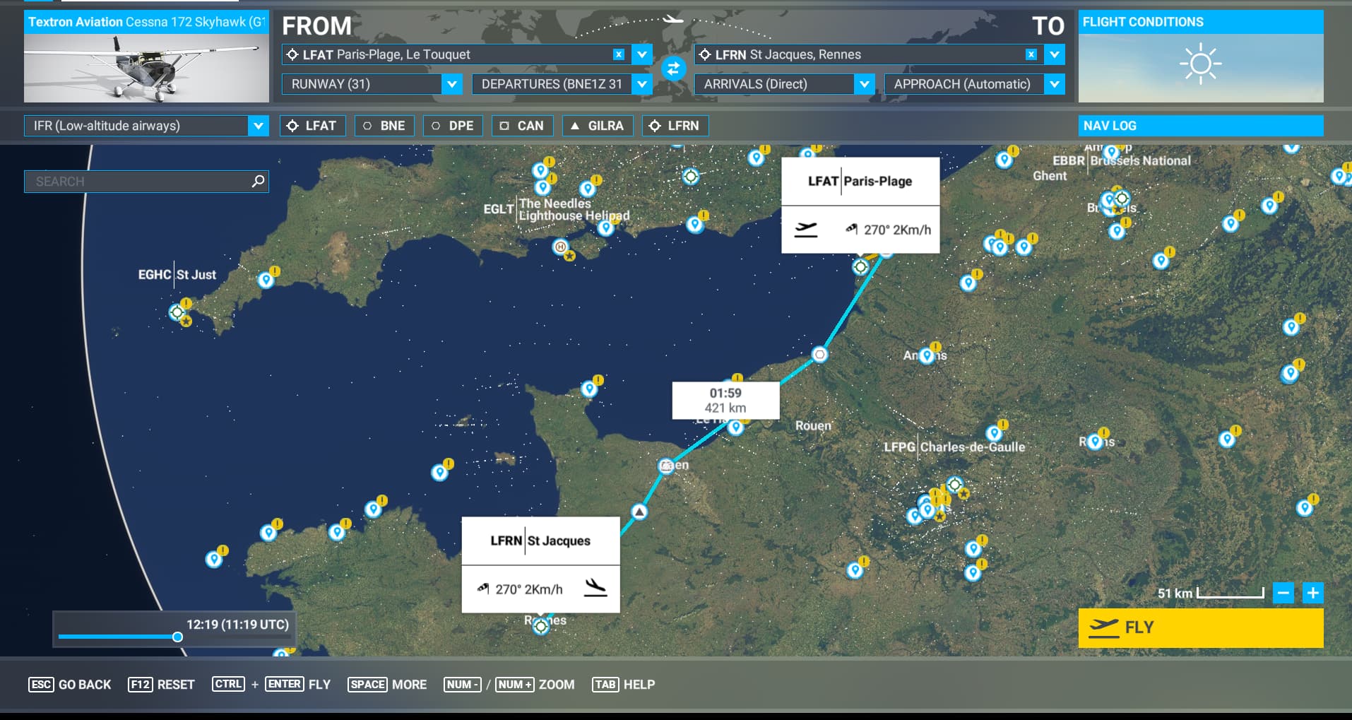 2- create a flight plan from LFAT to LFRN with the C172: flight time/distance don’t show-up