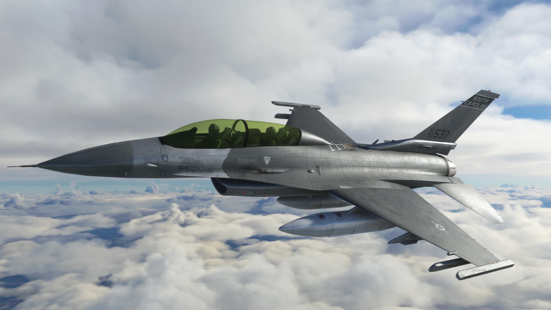 The next two to three weeks will see the completion of the F-16C cockpit, which will then allow me to convert the modeling to support the rear-seat layout of the F-16D. This will not be a fully functional rear cockpit – the visuals will match up, but the displays will be repeaters. Full flight controls however will be included, and all essential instruments for instructing purposes, ready for when we see shared-cockpit come to MSFS."