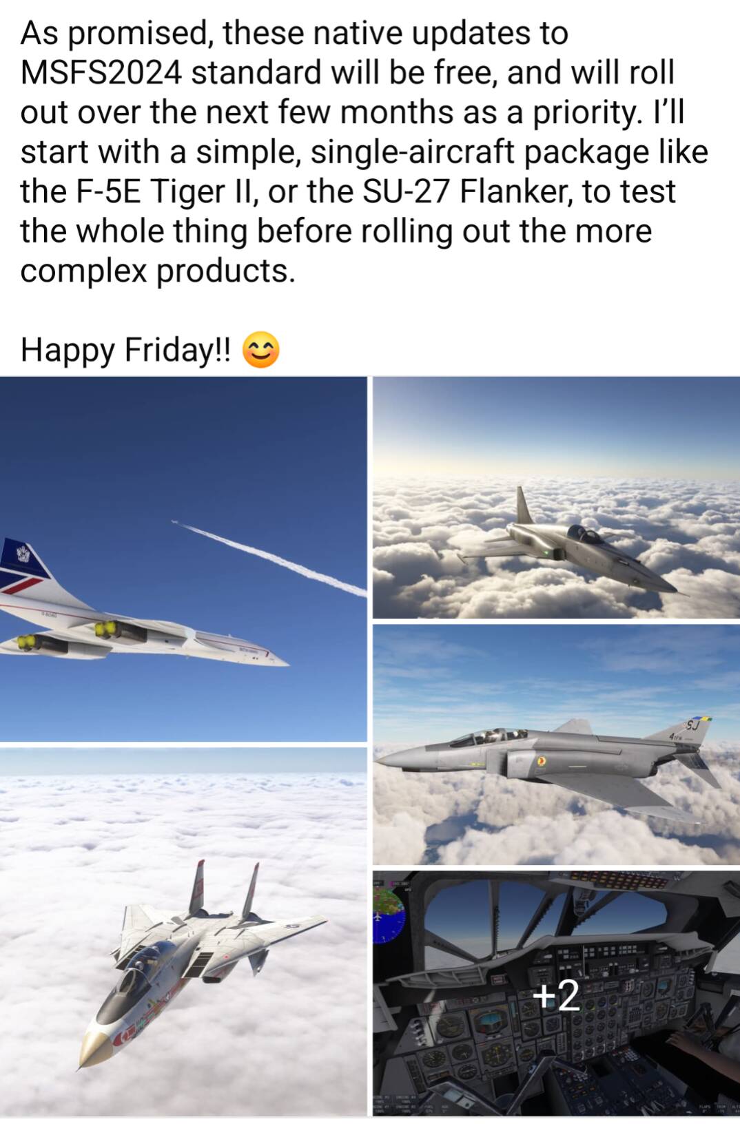 I’m not on their Discord. Would you, Kind Sir, be able to tell me if they are planning native 2024 updates anytime soon for the Falcon and Tomcat? If it’s not too much trouble, that is.