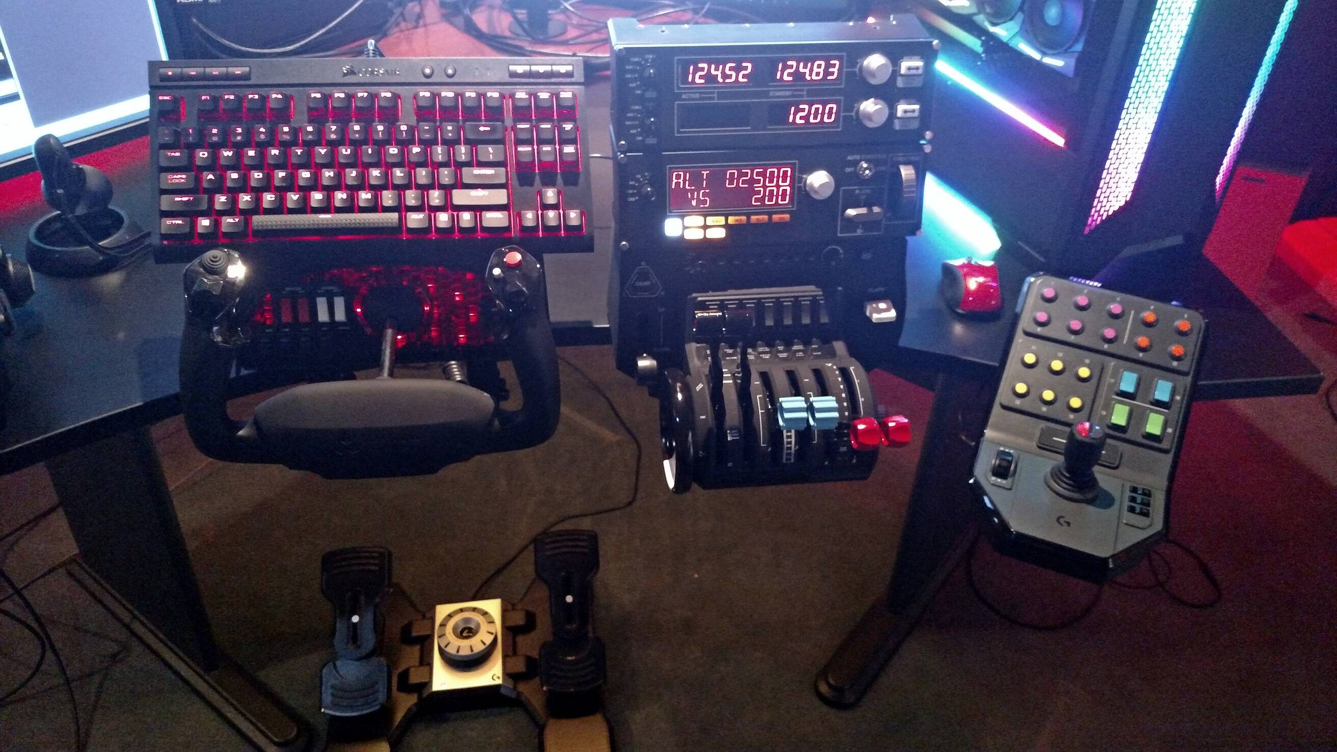 Regarding your “rejig” concern… I got this before my Bravo Throttle arrived, and I too thought I was going to run out of space on my desk for all things “clamped” but once I got used to this panel for camera control, I wasn’t going to be without it and I was determined to make it all work. I actually found a desktop from a guy on Craigslist (Actual product here) that had a nice sweeping inset which proved to be wide enough to encompass all three devices (Alpha Yoke, Bravo Throttle, and Heavy Equip Panel). I mounted everything with their respective clamps first… until I decided where things would work best. Then I removed the clamps and just screwed the pads directly to this new desktop. This secondary desktop is literally just setting on top of my existing desk. Without the clamps in the way, I could move my keyboard and mouse to a sliding drawer underneath it all.