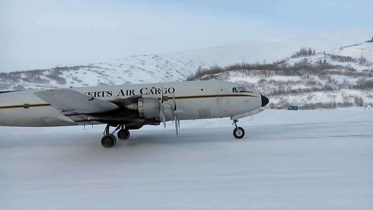 Everts Air Cargo DC-6 winter landing at LRRS:
