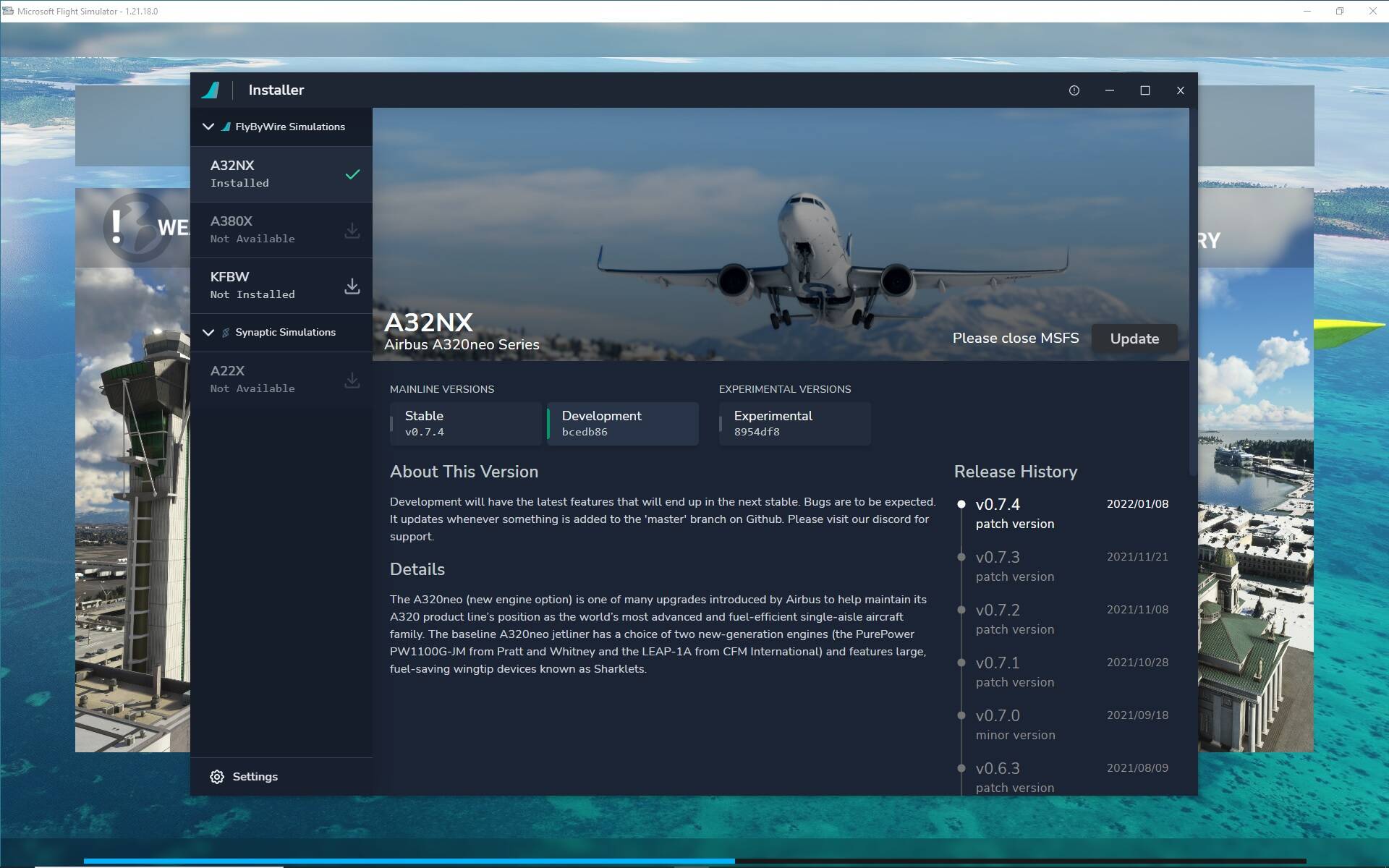 I have done a total fresh re - install of my MFS2020, but I have had issues to download A320 flybywire into MFS2020.
