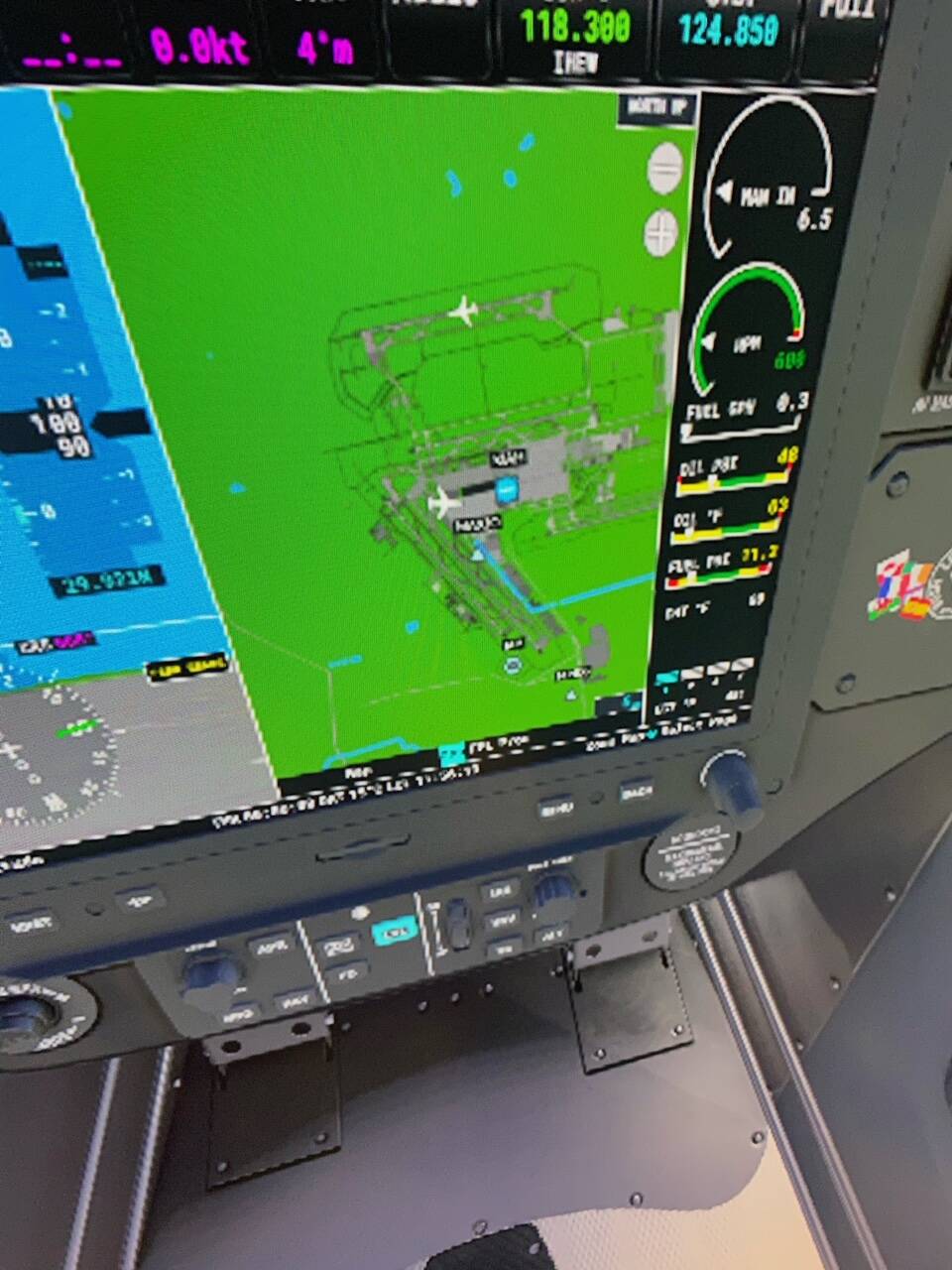 Cub cockpit, at KIAH, in VR mode. Two pictures taken seconds apart (I don’t have 4 arms), looking down at the Garmin map. I tried to keep the headset in the same position and pointed in the same direction (or only inches of difference).