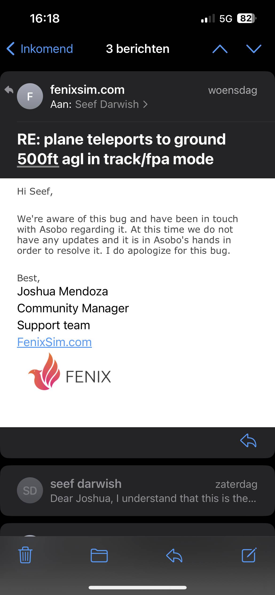 I have opened a support ticket where the support team told me that “this is a problem only Asobo can fix” so they can’t do anything about it… through this post I’m trying to set the pressure on Asobo to fix this problem and deliver a hotfix or communicate with the Fenixsim devs to get this sorted it out so I can fly again with no fear of this happening.