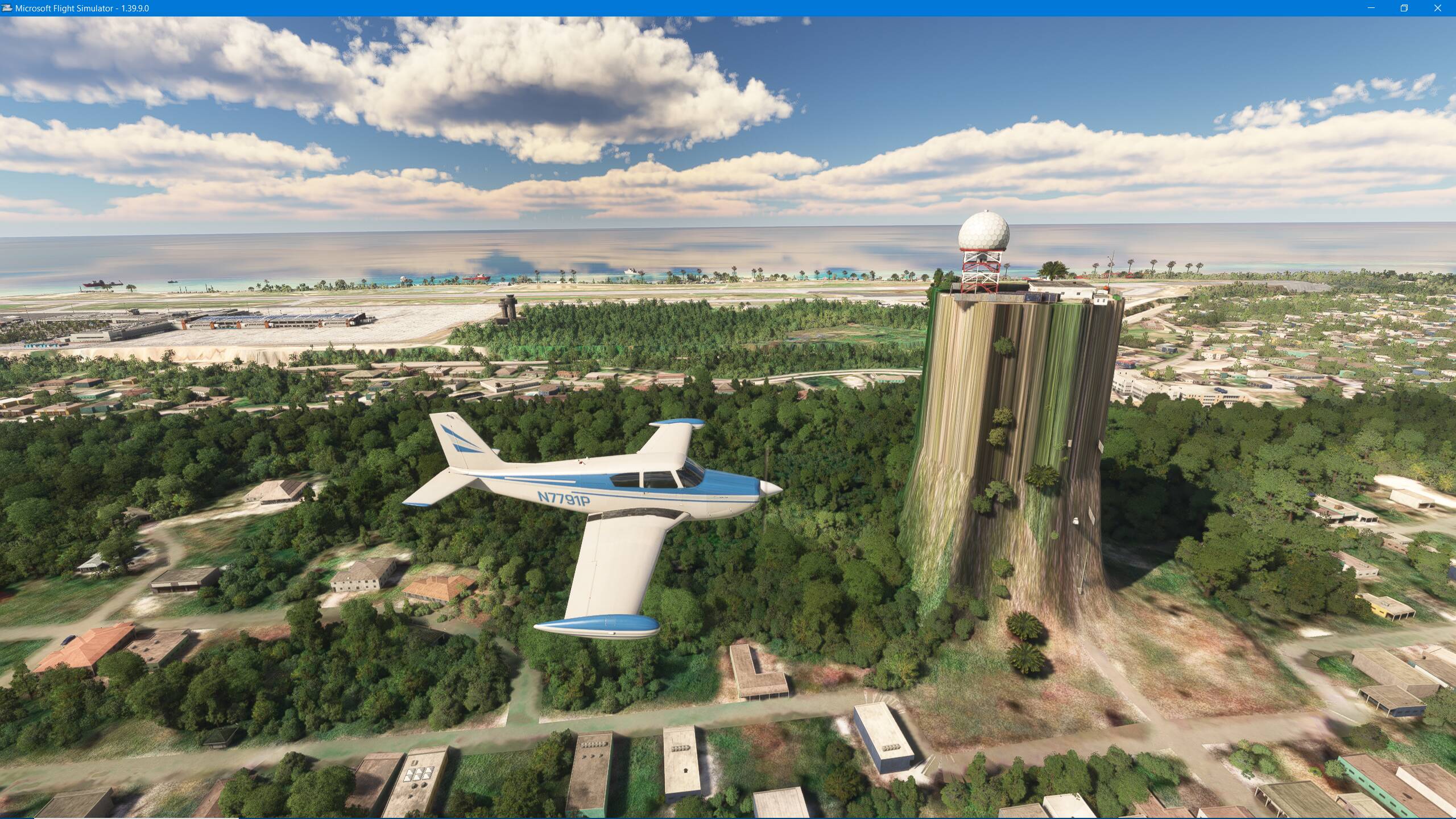 Flashing coastline at MKJS and terrain anomaly next to airport, radar sitting on top of a towering spike. The sim did something strange at startup causing me to reconfigure a bunch of my settings. Currently, on version 1.39.9.0 as seen in the screenshot. All system and graphic drivers are up-to-date. Nothing in Community Folder (disabled everything) but do have a payware airport from Final Approach Simulations purchased from the Marketplace seen in back ground of screenshot. Video attached of nearby water (coastline) flashing.