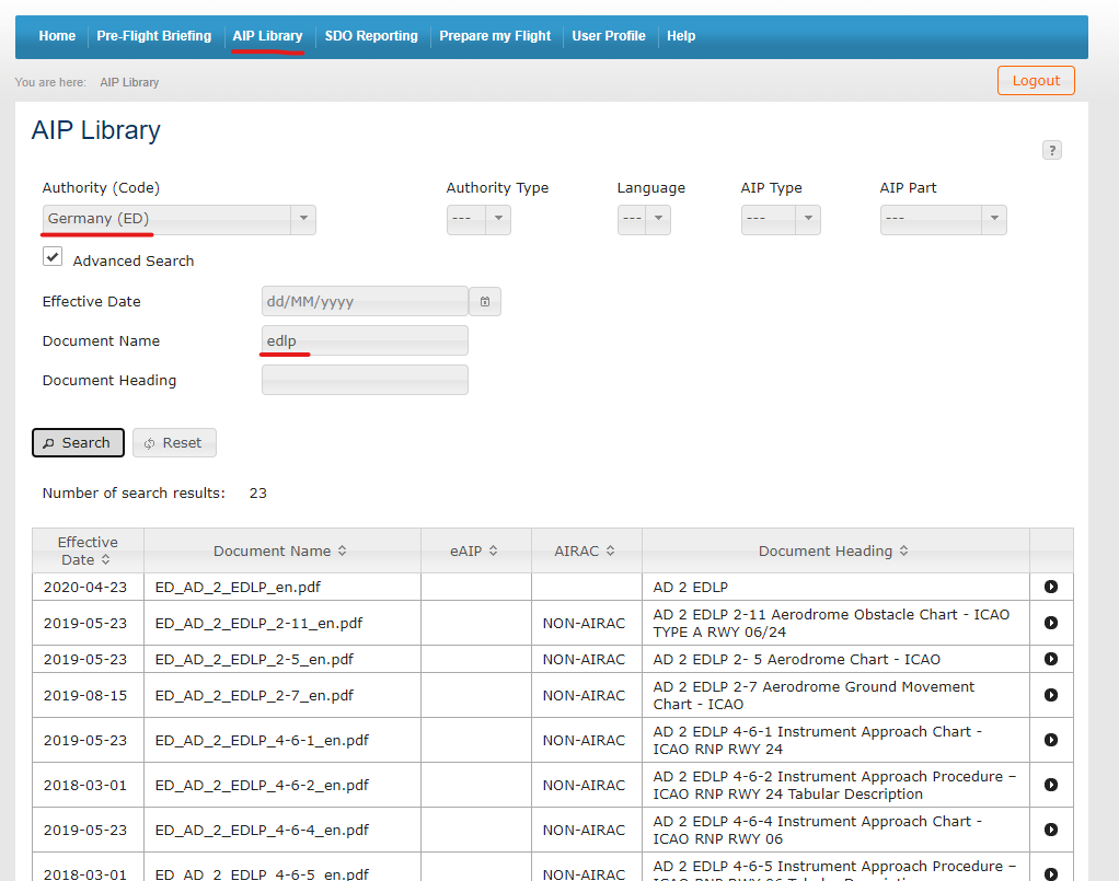 And quick example on how to easily find charts based on airpot ICAO code in EAD: