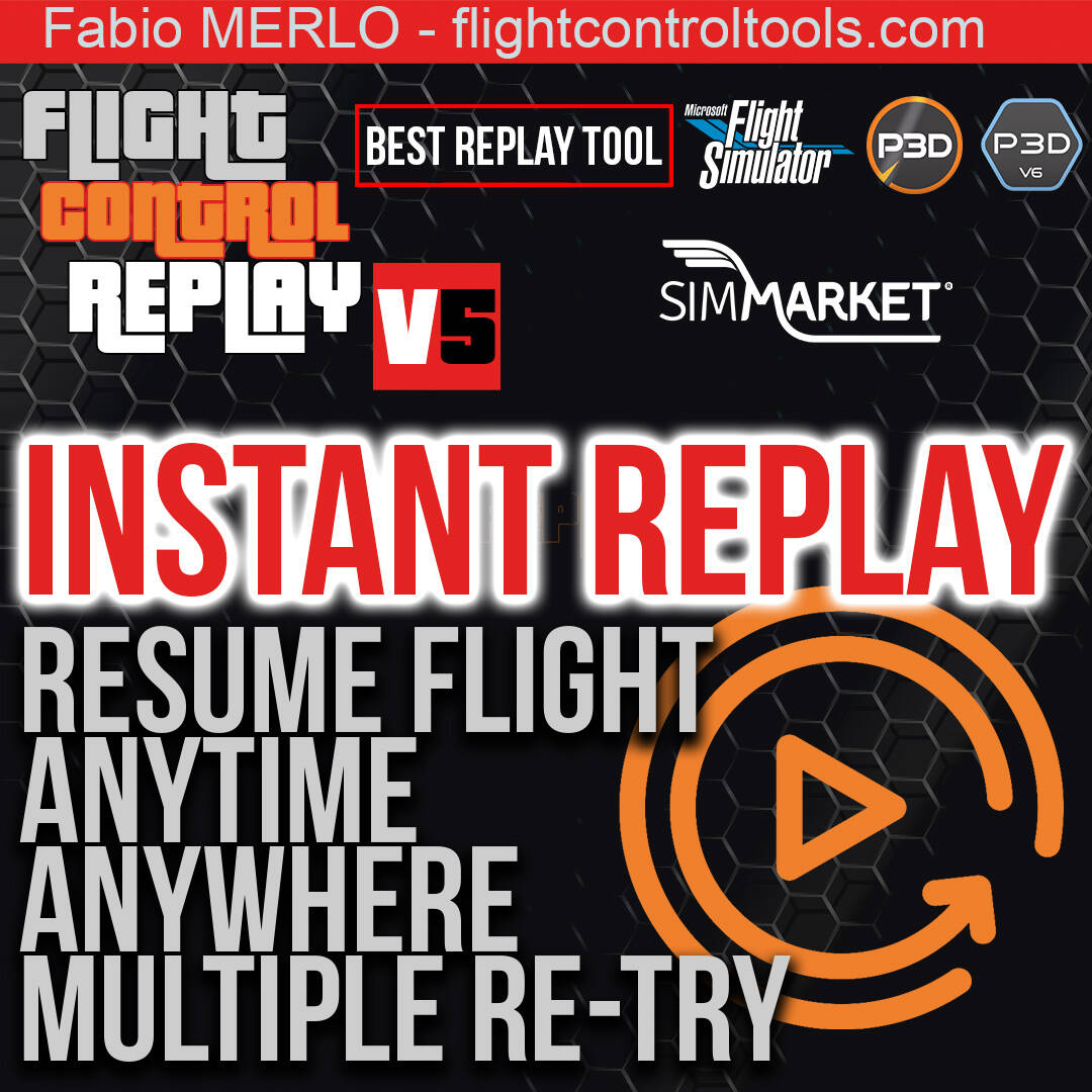 And of course, all these features are available at any phase of flight. You are not limited to a location or a specific time. Instant Replay is ready anytime and anywhere, for both MSFS and P3D, just activate the feature and enjoy your complete tool FlightControlReplay 5.