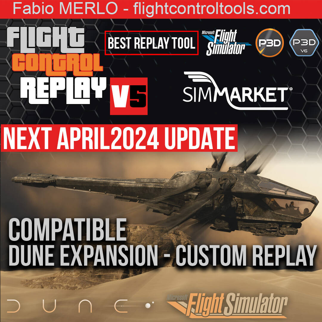 I can start revealing the content to expect of the next free update for FlightControlReplay 5. In April2024 update, you will be able to record and replay your sessions with Dune Expansion in Microsoft Flight Simulator !