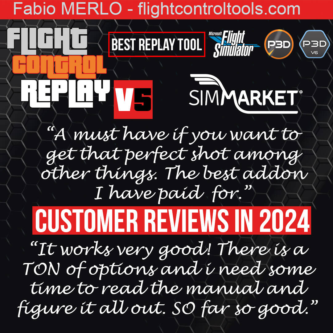 By checking the latest customer reviews posted about FlightControlReplay 5 at SIMMARKET store, I read some heart warming words from users who seem quite happy with their purchase of the replay and recorder tool. Thanks to the flightsim community for your support and kind words !
