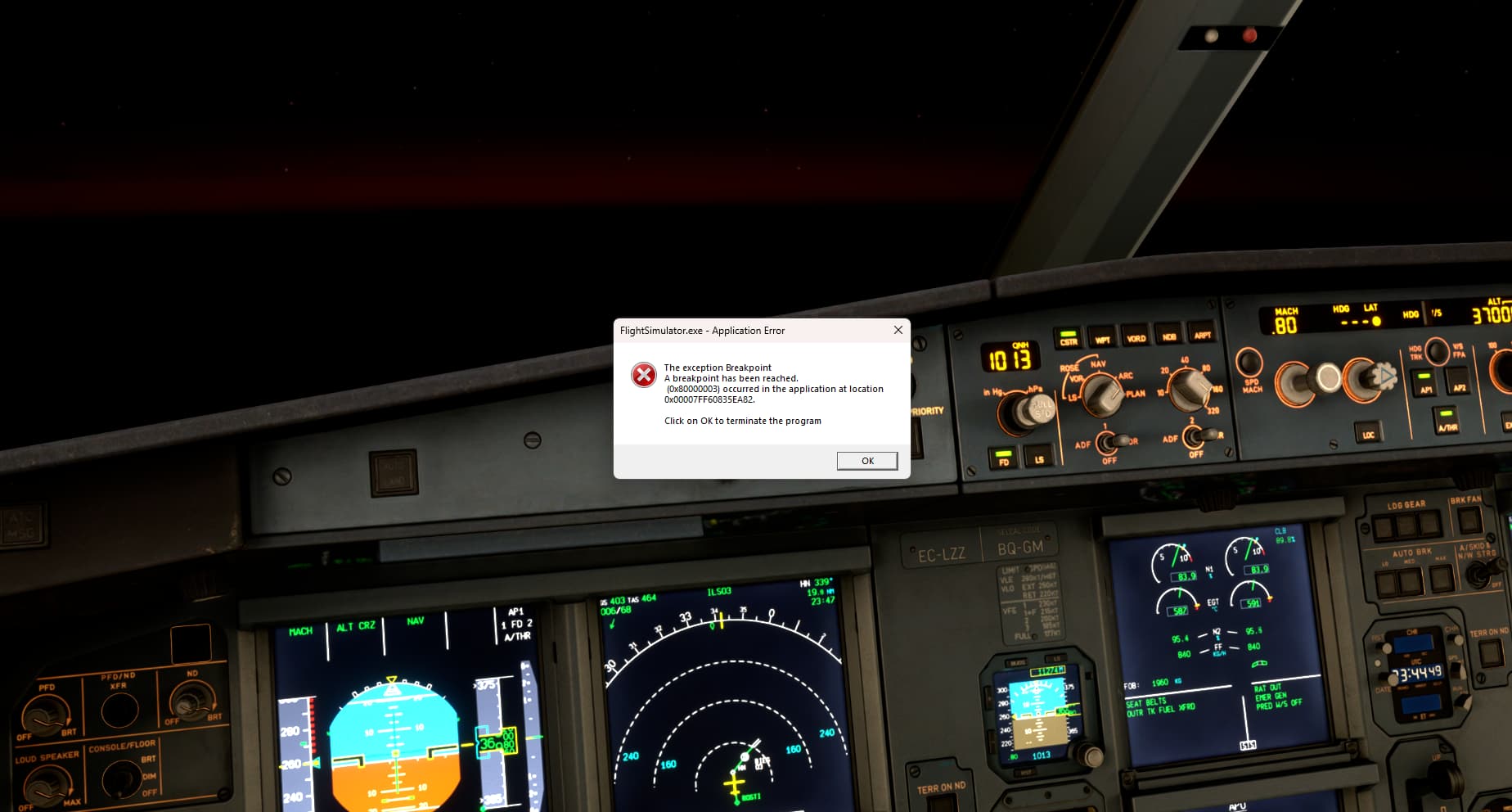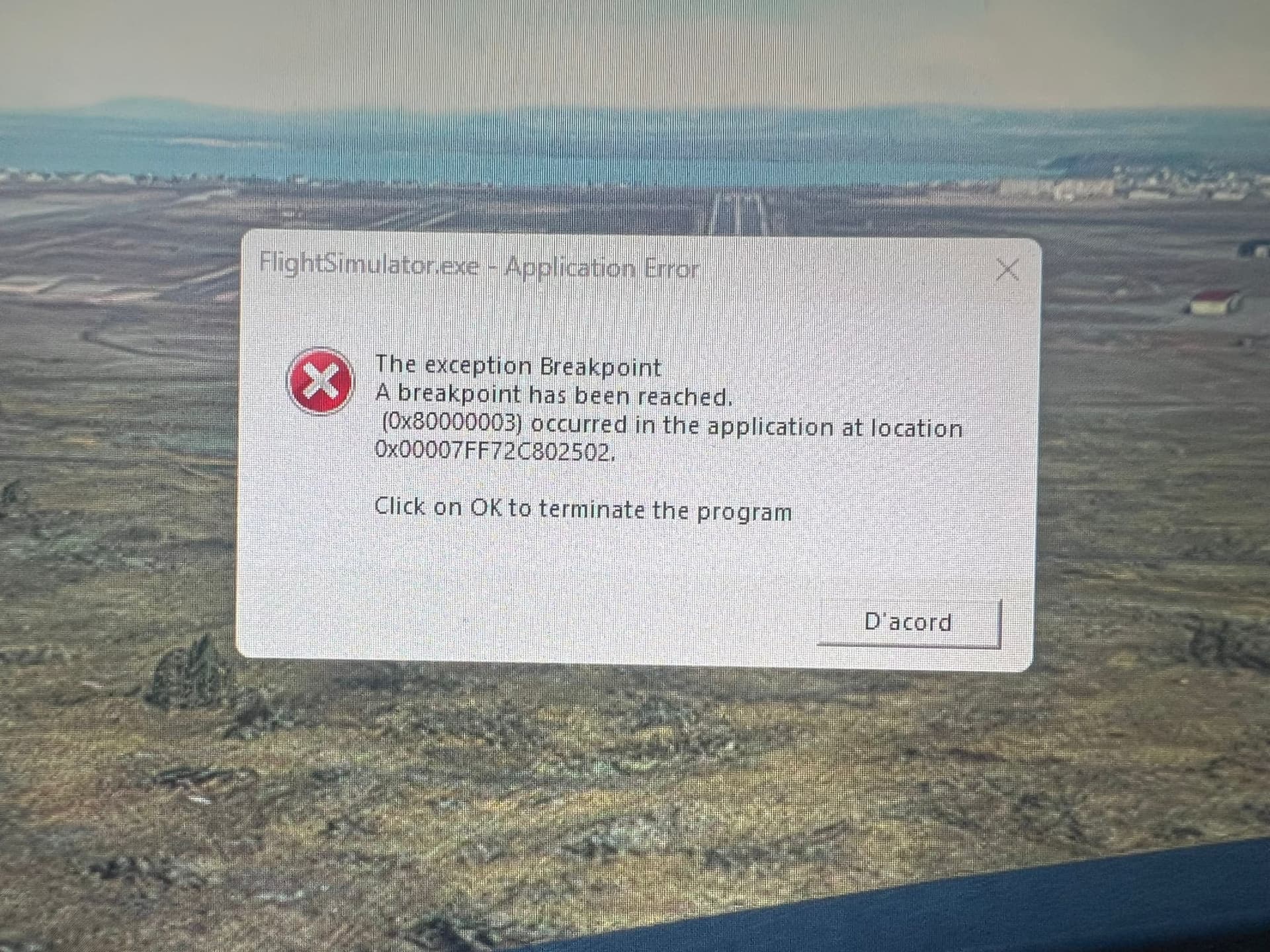 Application pop-up: FlightSimulator.exe - Application Error : The exception Breakpoint