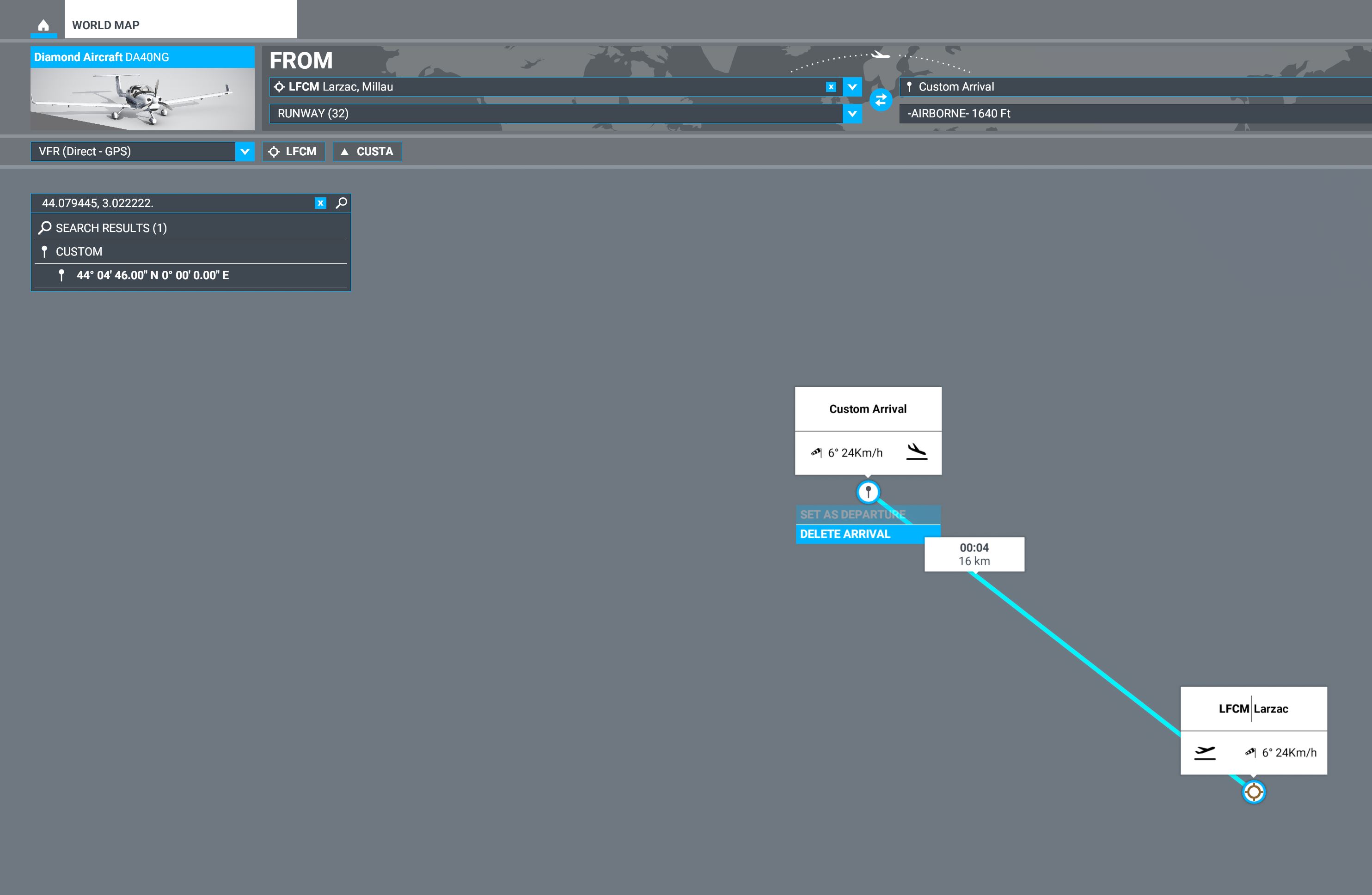 Thank you for answering. In fact my arrival location is not an airport or a POI both having a name and I want only to fly around this location. It is only a couple (lat,lon) and on the map this couple has the label “custom”.