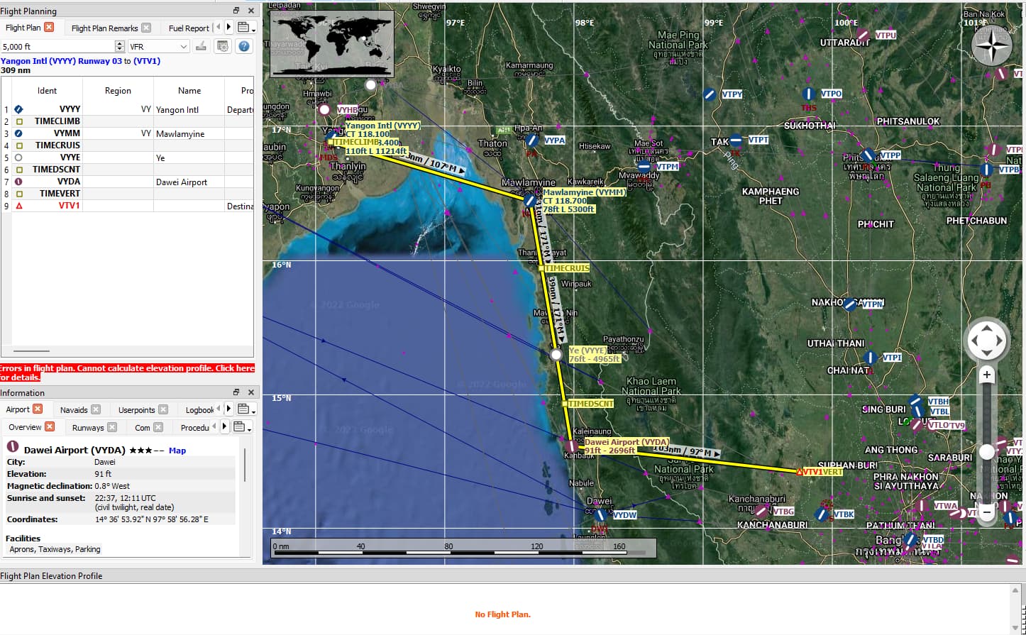 Airports: VYYY, VYMM, VYYE, VYDA, VTV1