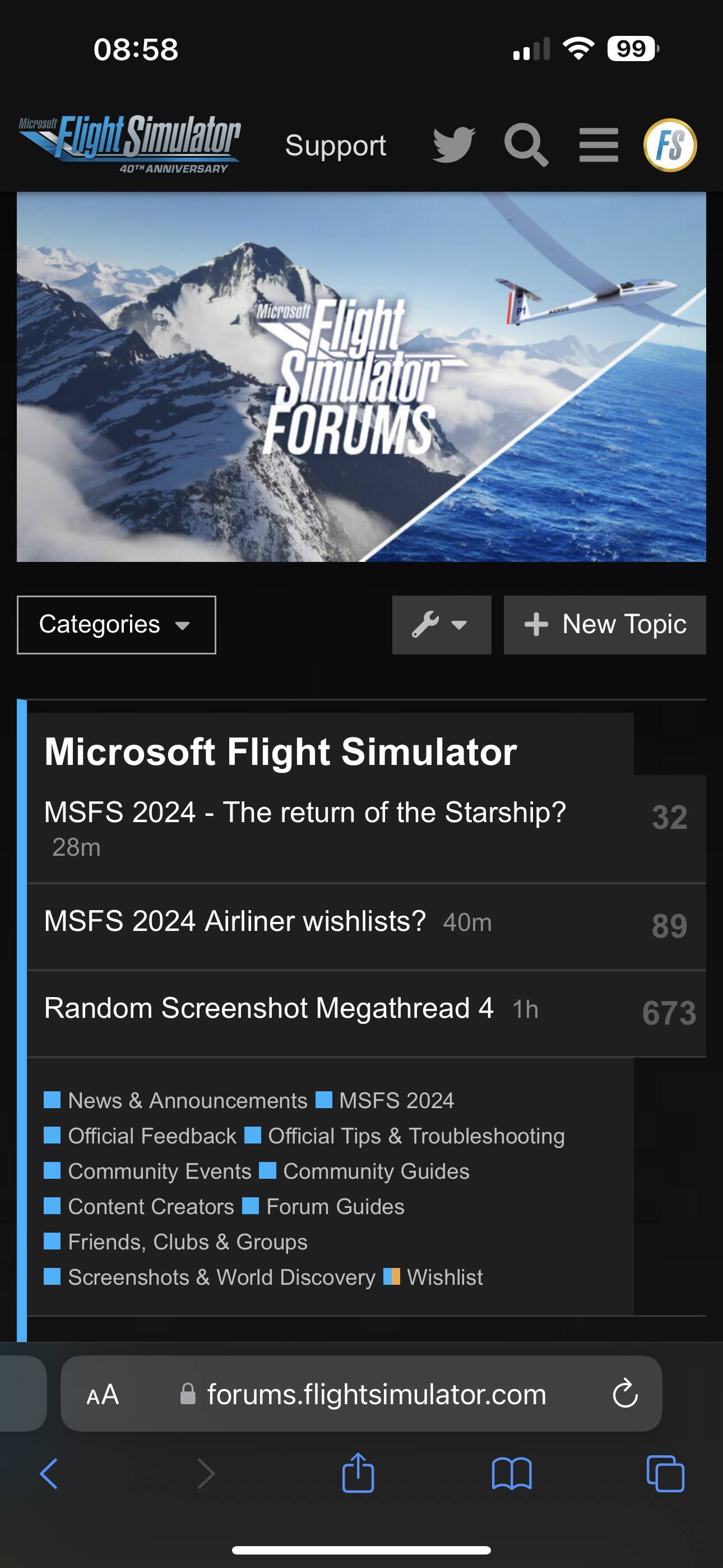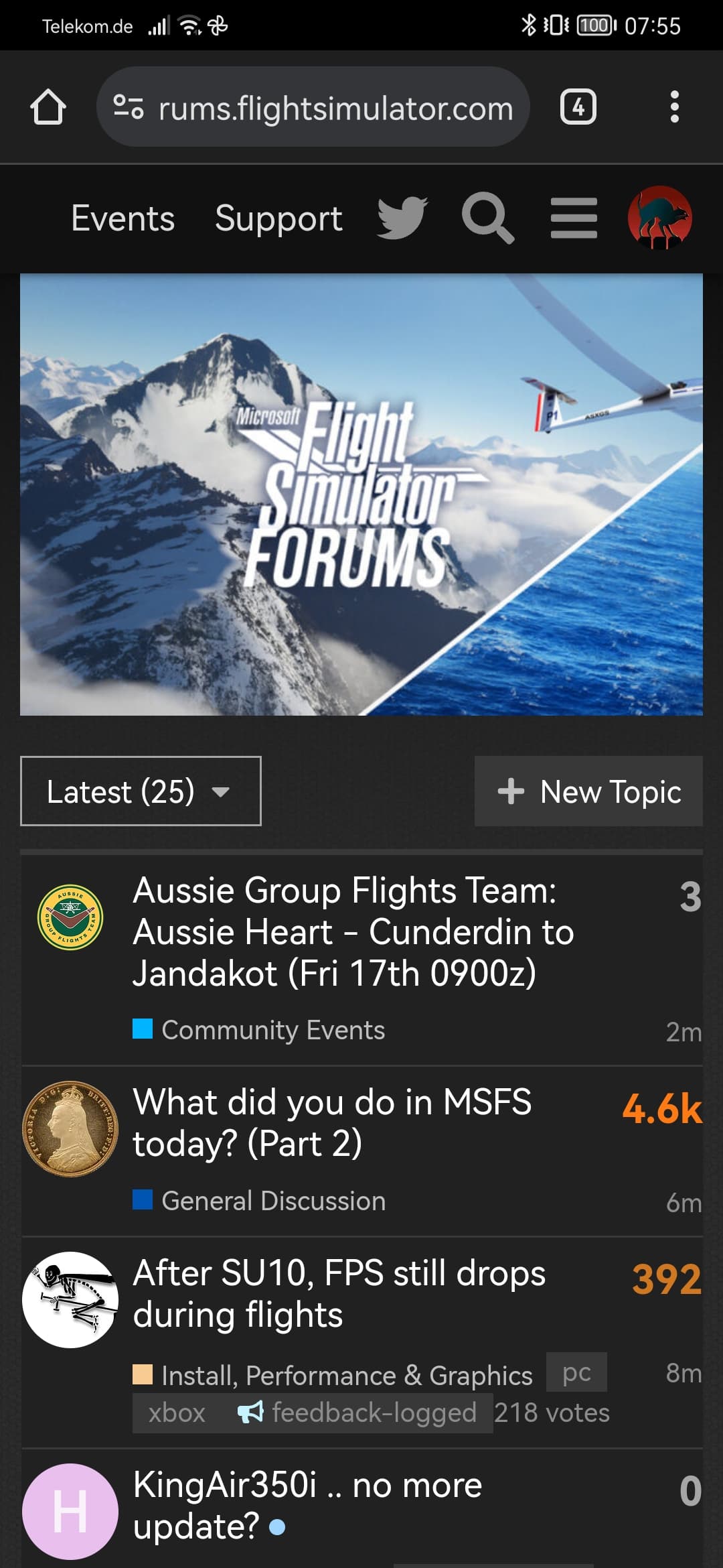 Since the last forum update there is no direct link anymore to go back to the main page with the list of the recent topics. Before there was the msfs logo, but this gut replaced by events. Please insert a direct link again to make quick navigation on mobile convenient again.