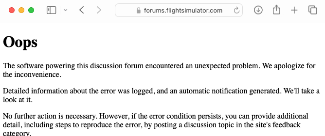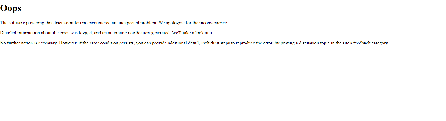 The software powering this discussion forum encountered an unexpected problem. We apologize for the inconvenience.