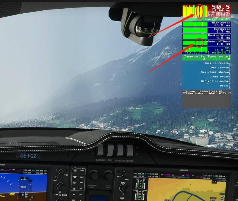 Your framerates not too shabby for a flight sim, even top gear PCs struggle with this sim at Ultra settings, even at less than 4K. Try and get a balance between the CPU and GPU loads and aim for smoothness rather than just FPS. Having a G-Sync or Freesync monitor would help a lot with any judders, as a smooth 35 fPS say is perfectly fine in a flight simâŠitâs not a shoot 'em up after all.