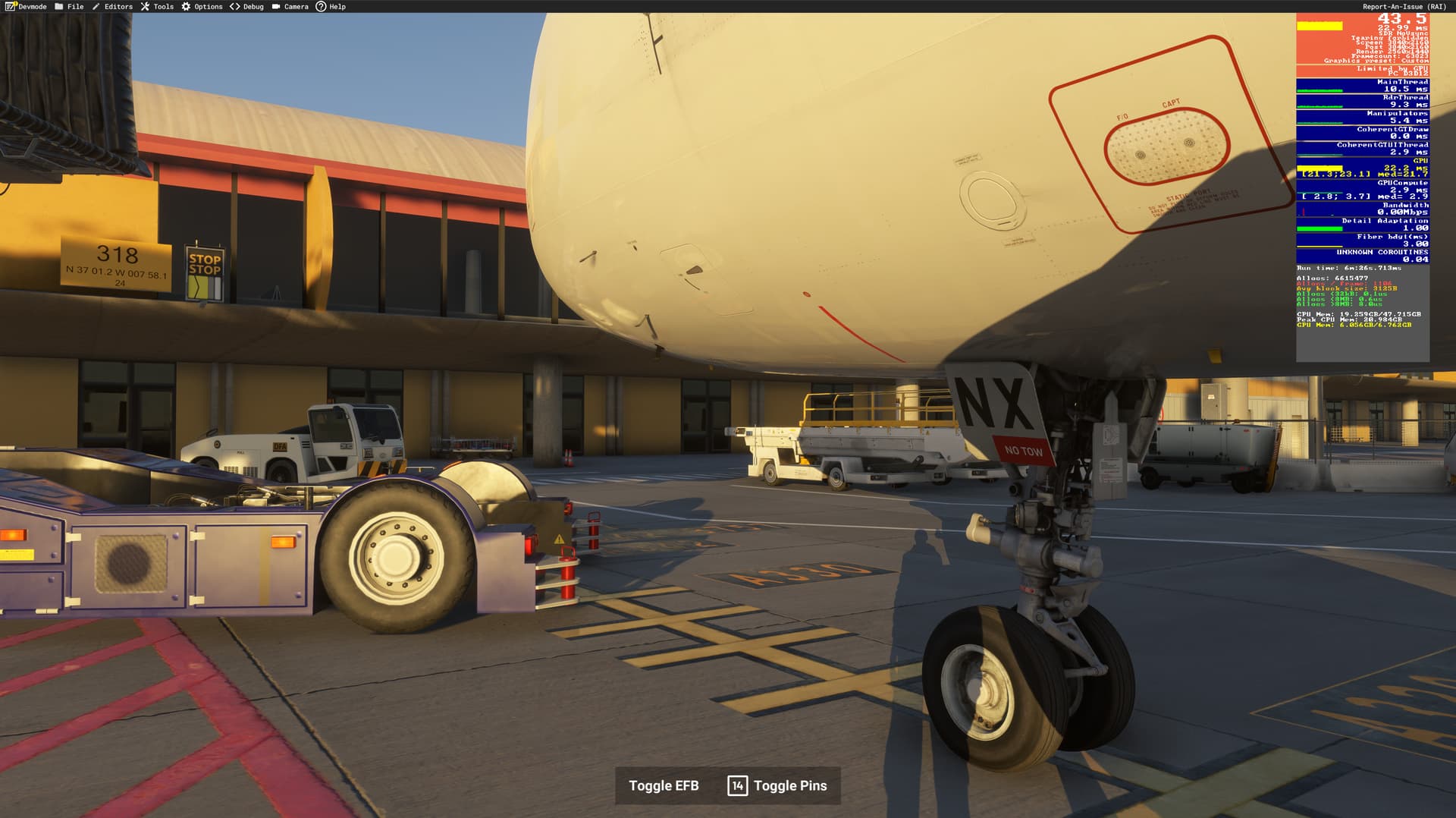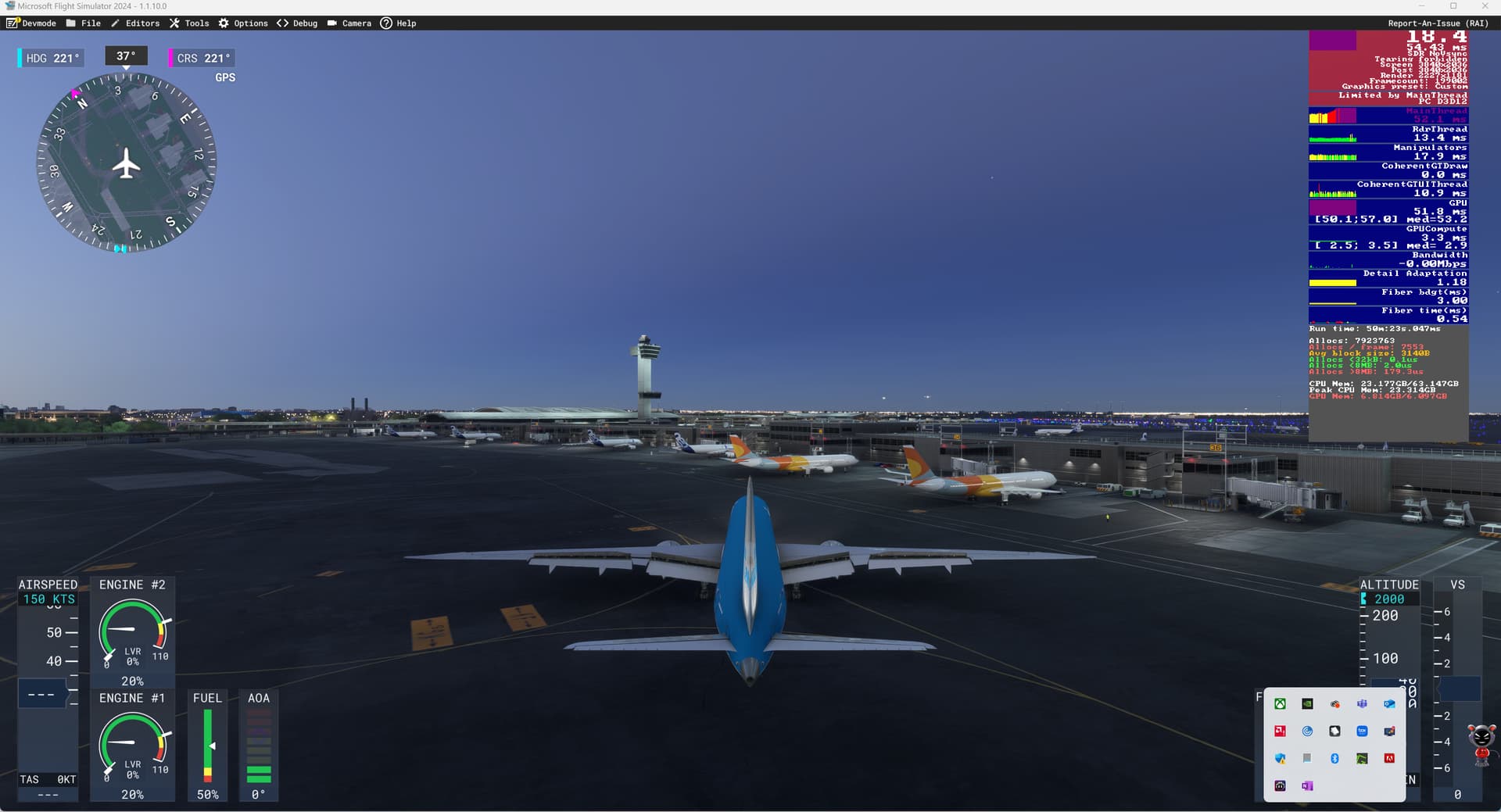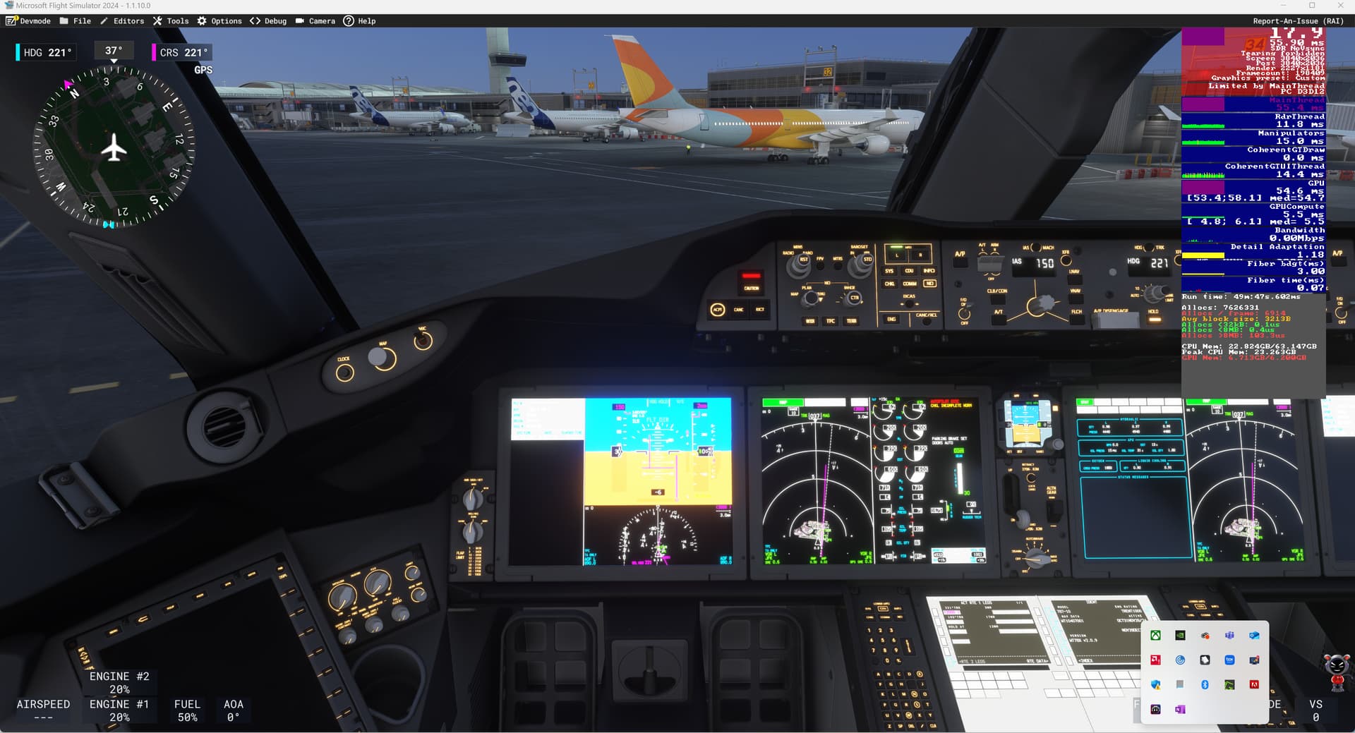 I also observed: if you open the tablet at the moment of the FPS drop, the FPS returns to normal and the plane remains in motion, but as soon as you start taxiing, the FPS drops again.