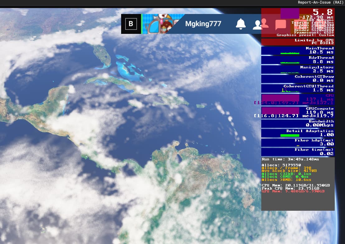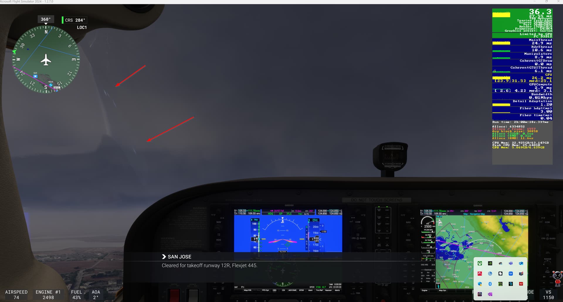 Spawning in Queenstown with the Cessna 208 and switching to outside view, these are my results from Windows 11 Task-manager/Performance tab + Ingame: